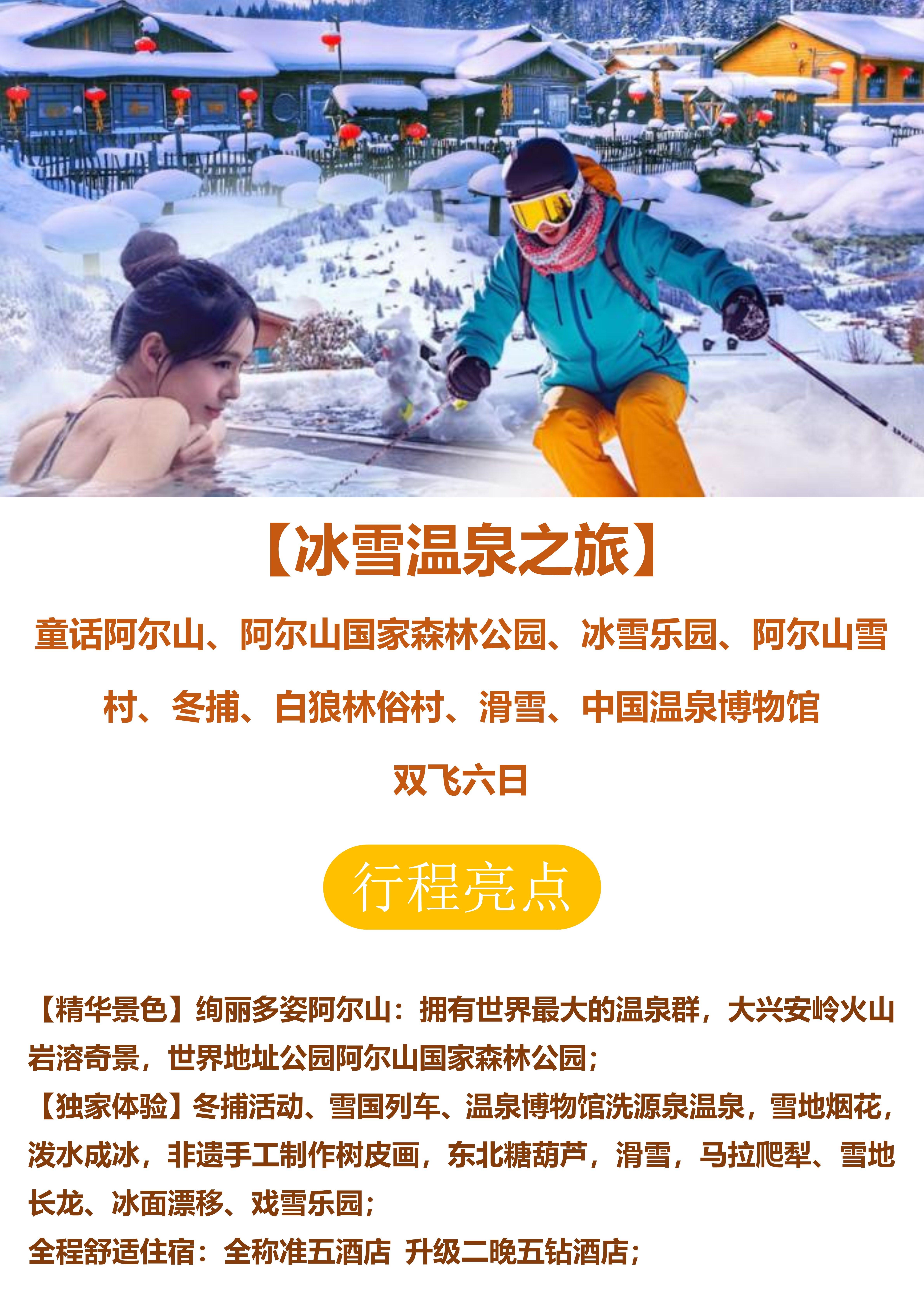 【冰雪温泉之旅】阿尔山滑雪温泉 双飞六日