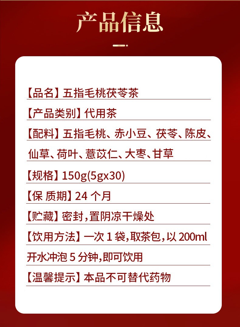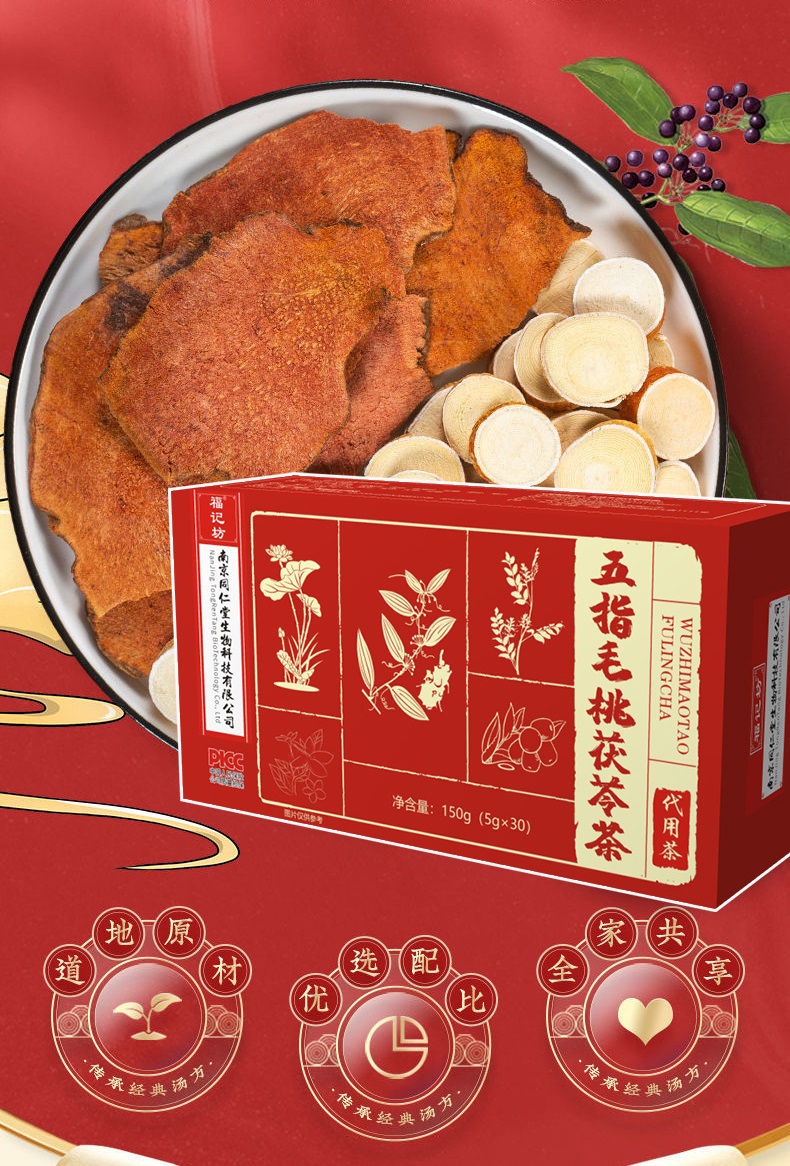 【南京同仁堂五指毛桃茯苓茶】清新爽口 温和滋润 传统古方 精心搭配 每天一杯好状态 30包/盒