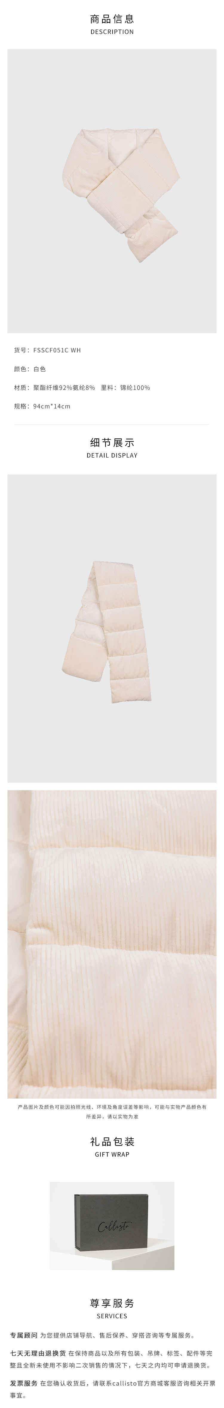 callisto白色聚酯纤维混纺羽绒围巾 FSSCF051C