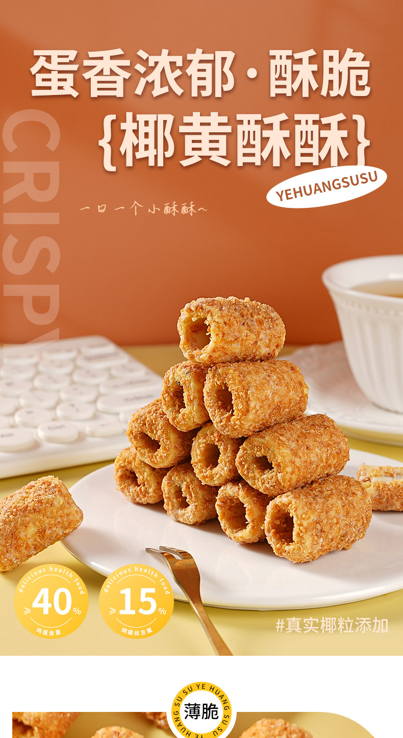 【营养健康!超好吃的椰黄酥酥】0反式脂肪酸,蛋卷与烤椰子丝,碰撞的快乐!网红手工鸡蛋卷休闲传统糕点代餐解馋宿舍办公室零食