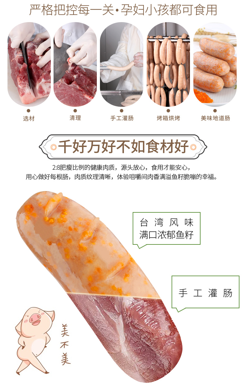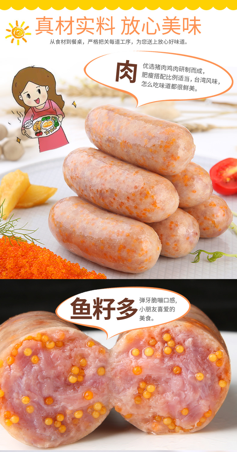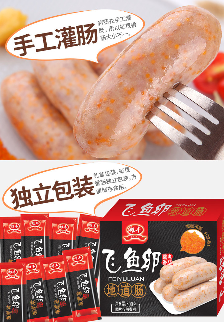 雄丰飞鱼卵香肠500g*2袋共16根鱼籽肠热狗肠地道肠火山石烤肠