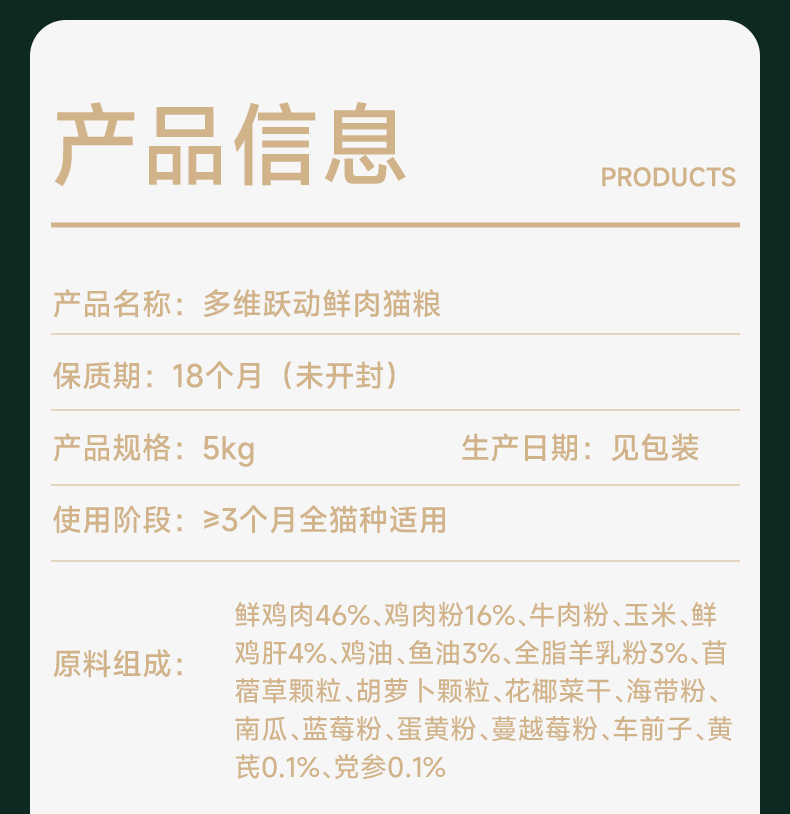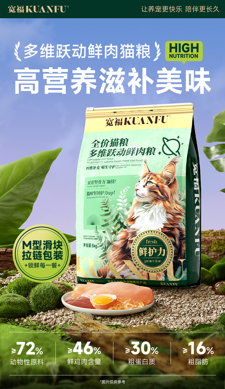 【10斤装成猫粮】多猫首选 宽福 尝鲜价!添加软骨素 帮助强健骨骼 黄芪党参 助力提高免疫力 多种维生素补充营养 多维跃动 鲜肉成猫粮