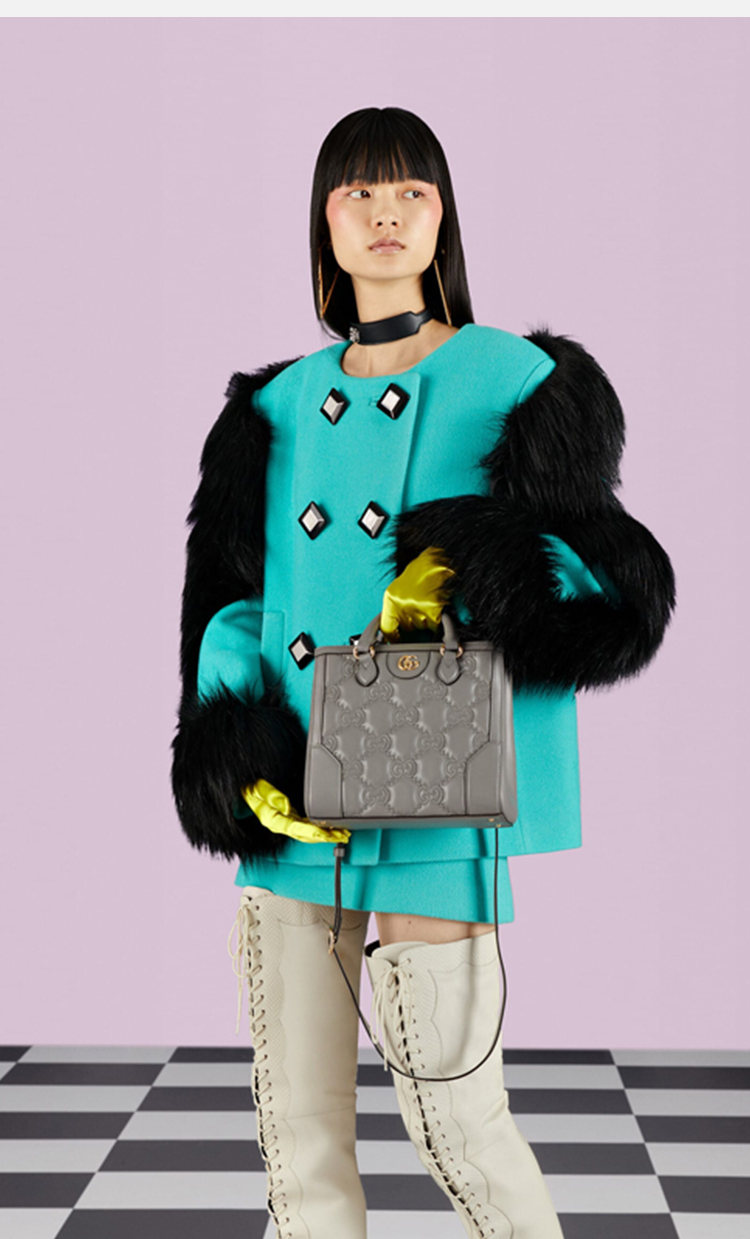 GUCCI 古驰 女士 GG Matelassé系列 皮革迷你提挎包 灰色 728309 UM8HG 1563