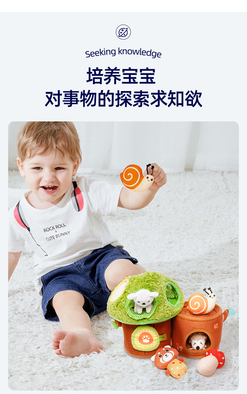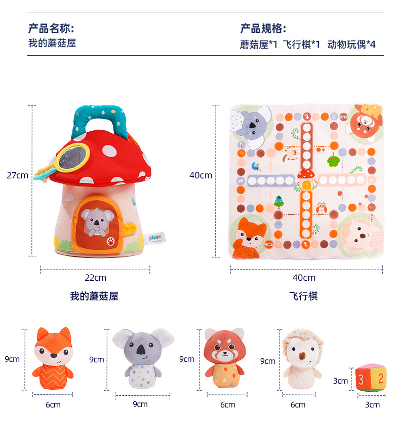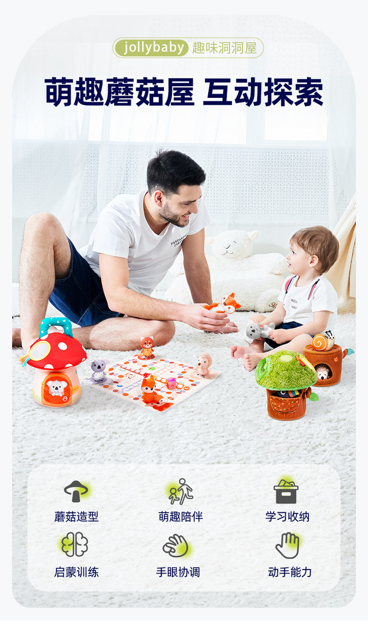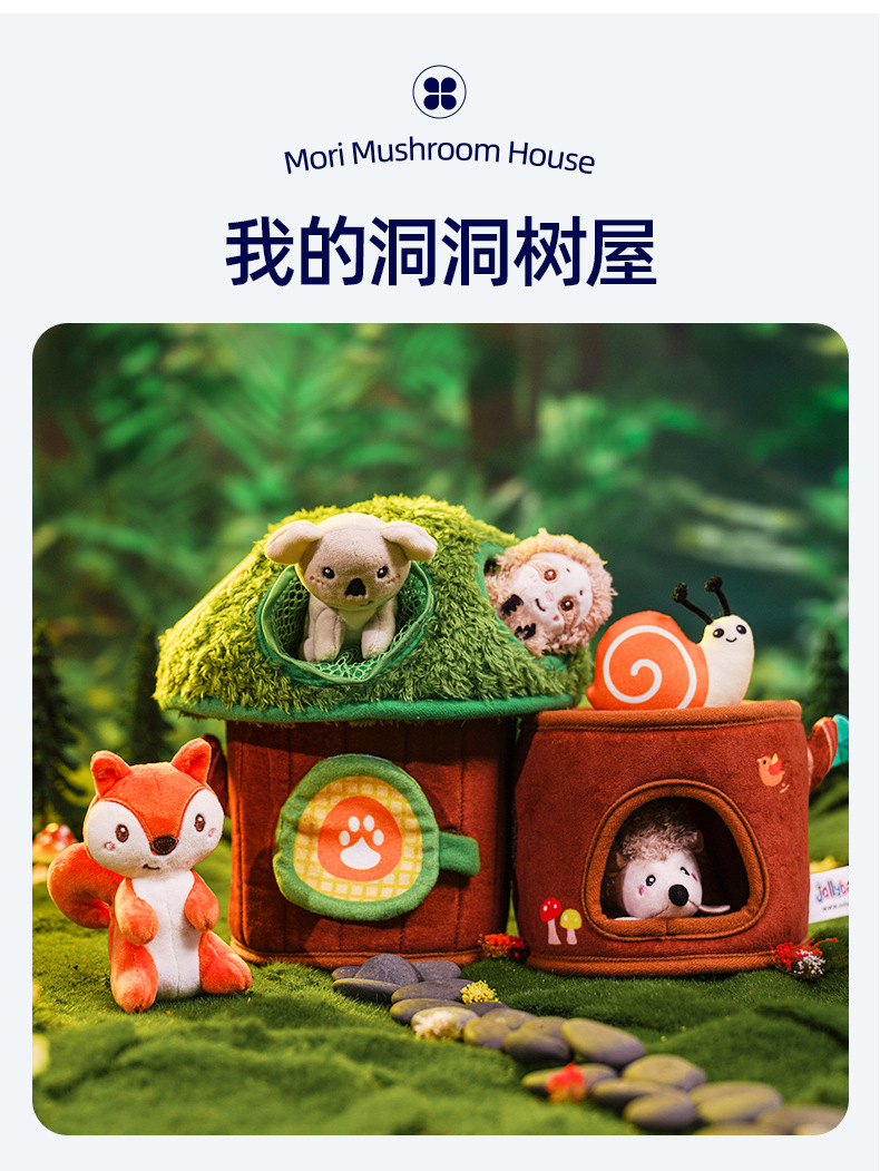 【萌趣洞洞蘑菇屋 学习收纳】Jollybaby洞洞树屋 软萌触摸互动小动物 启蒙训练 锻炼动手能力 培养宝宝生活好习惯