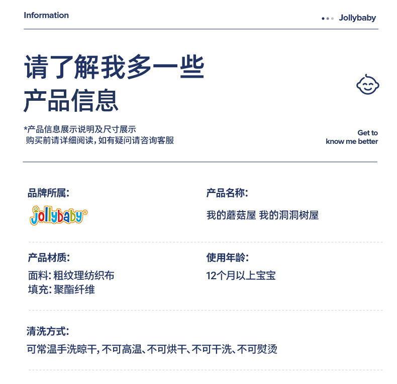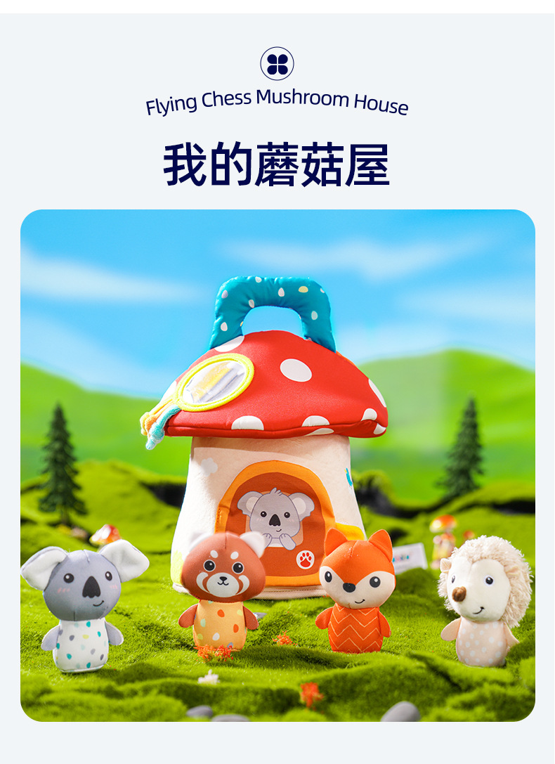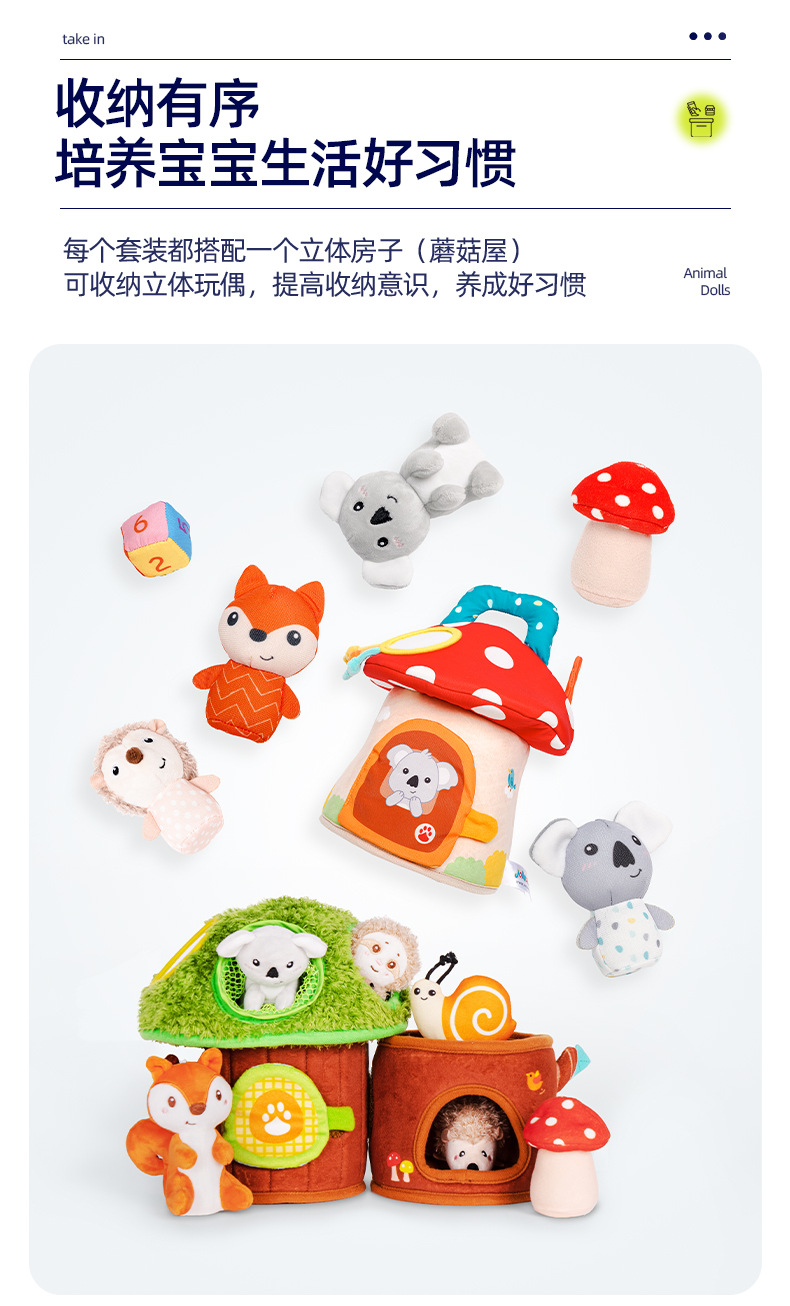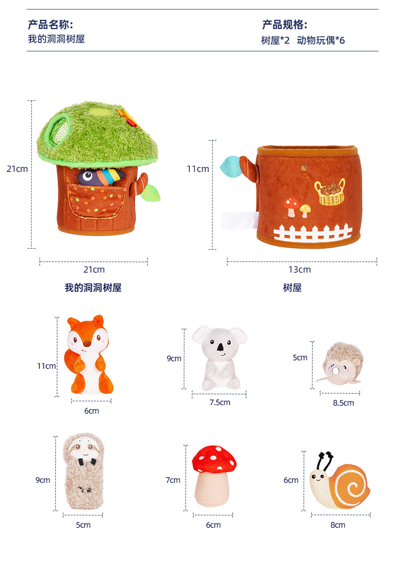 【萌趣洞洞蘑菇屋 学习收纳】Jollybaby洞洞树屋 软萌触摸互动小动物 启蒙训练 锻炼动手能力 培养宝宝生活好习惯