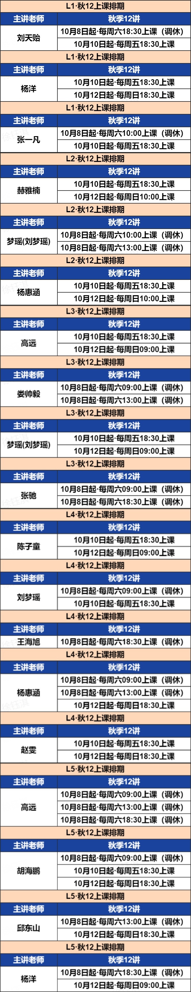 每周一讲,每周五/六/日上课(国庆假期后涉及调休