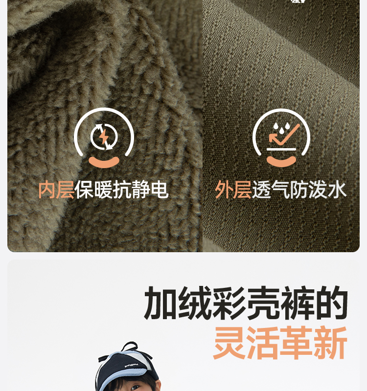 onmygame【加绒彩壳裤】儿童长裤户外保暖男女童工装裤子秋冬18180