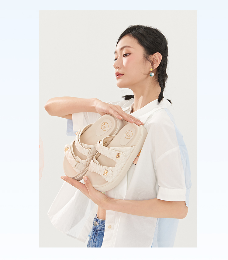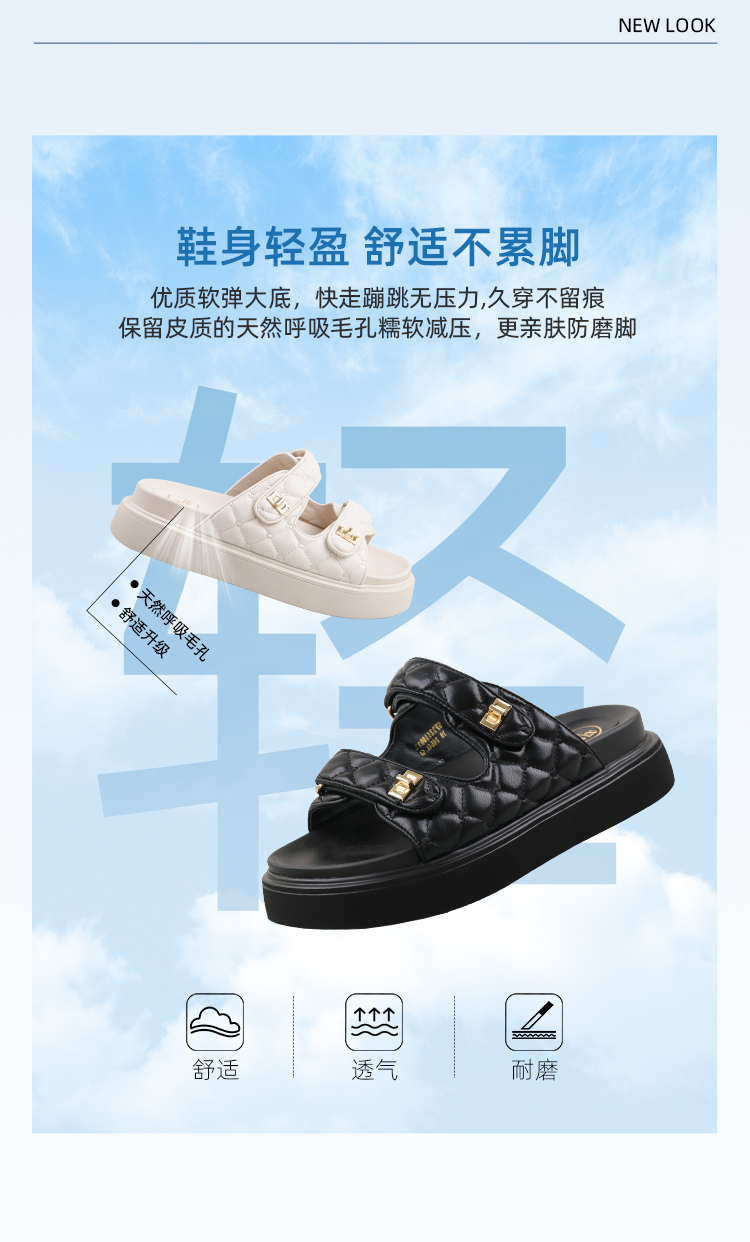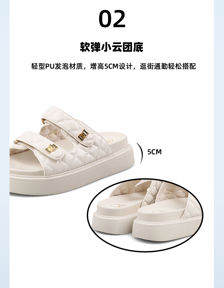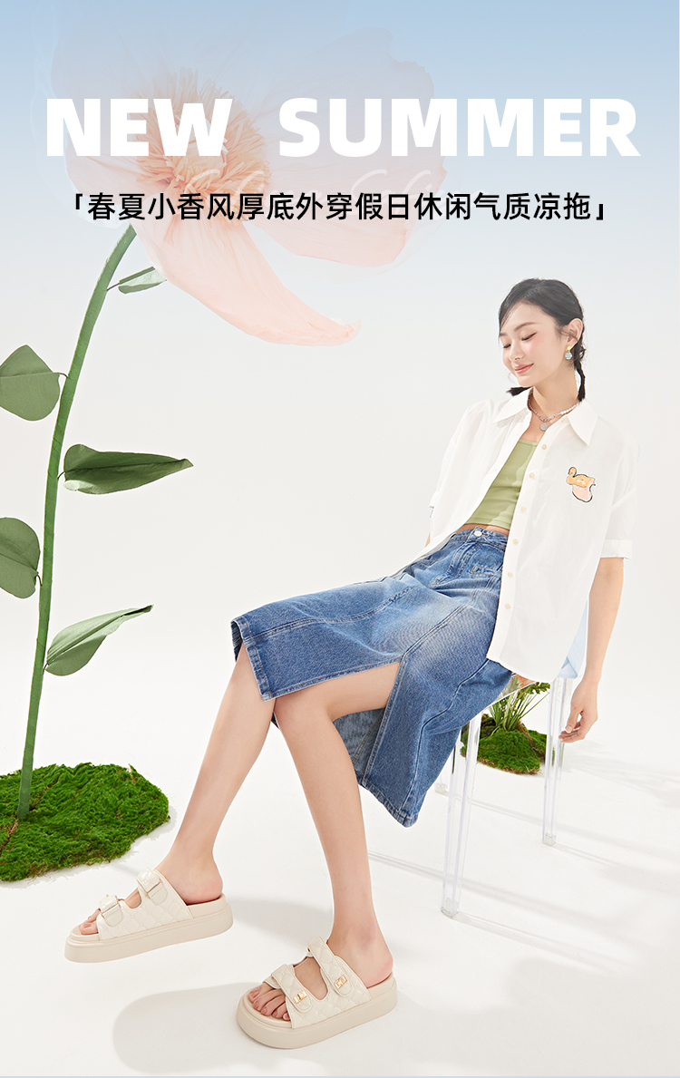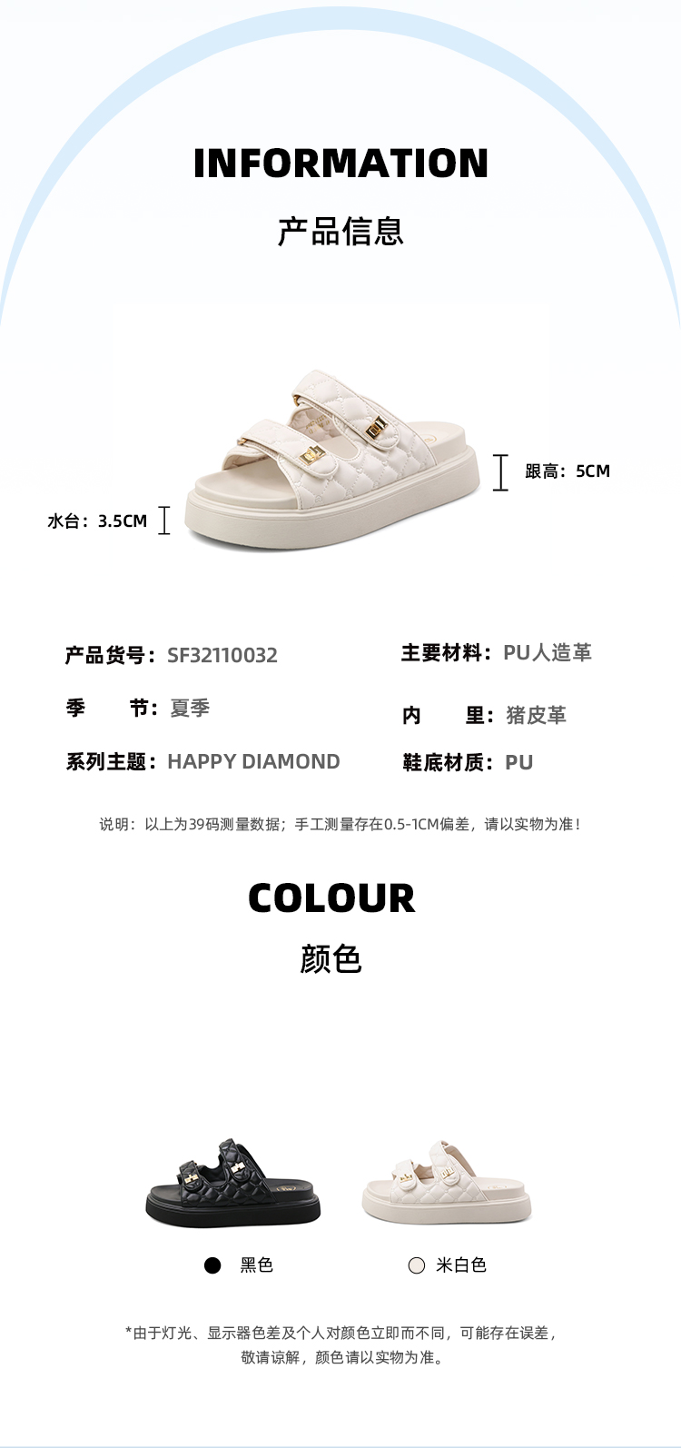 Safiya/索菲娅2023新品春夏小香风厚底外穿假日休闲气质凉拖SF32110032