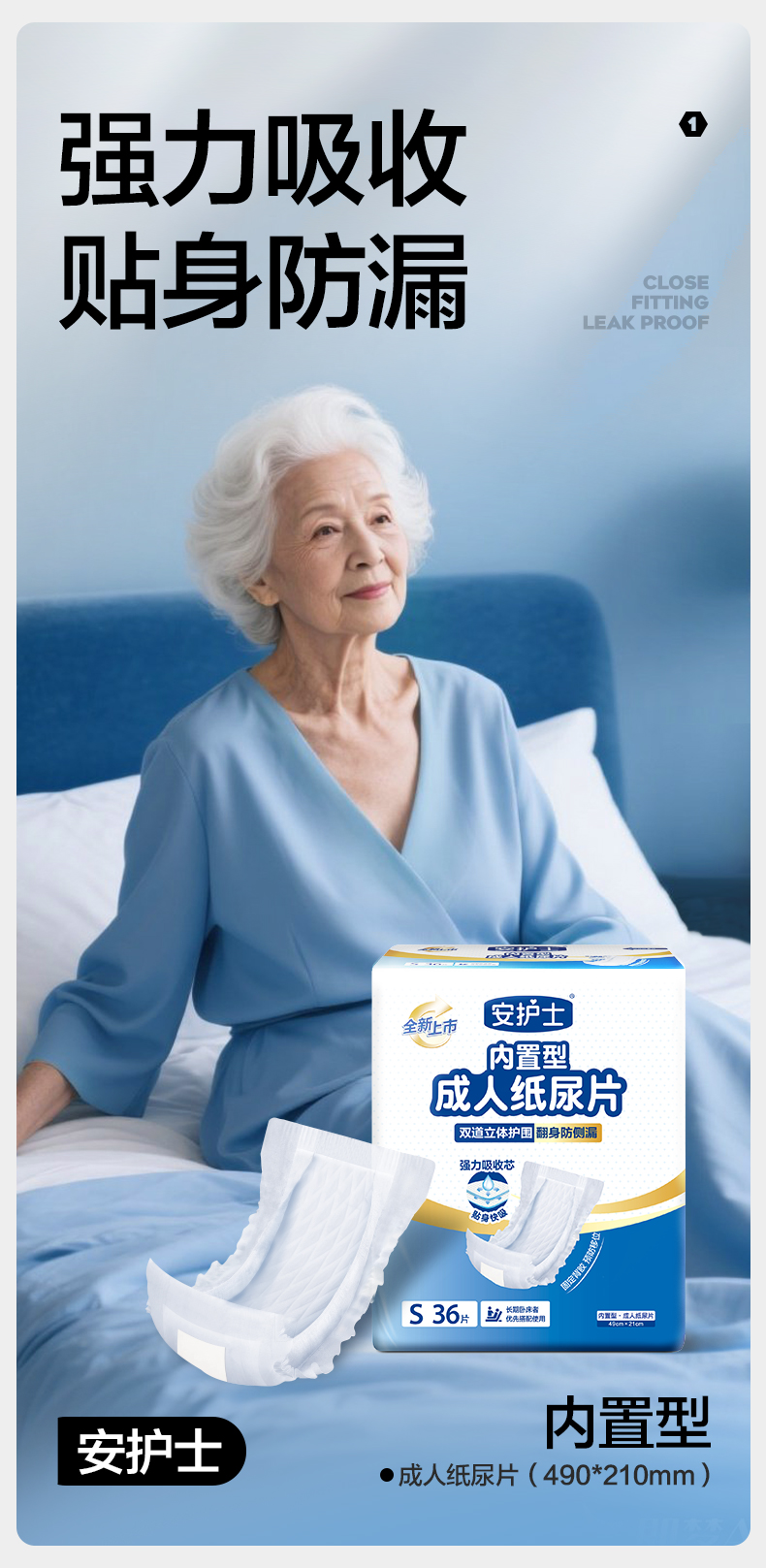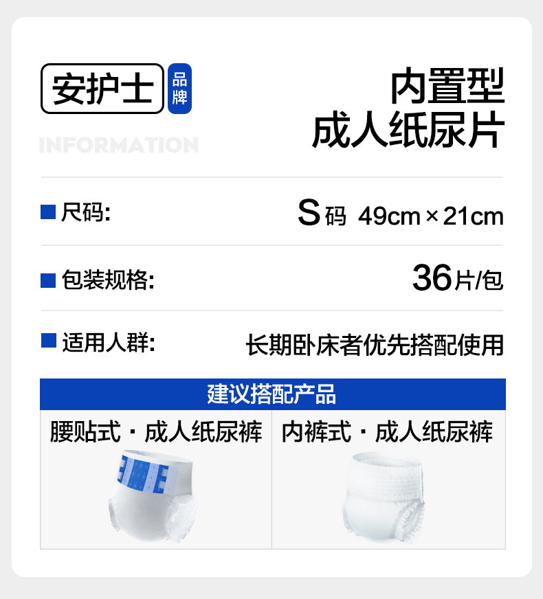 【安护士490*210纸尿片 单包】内置型成人纸尿片 36片/包