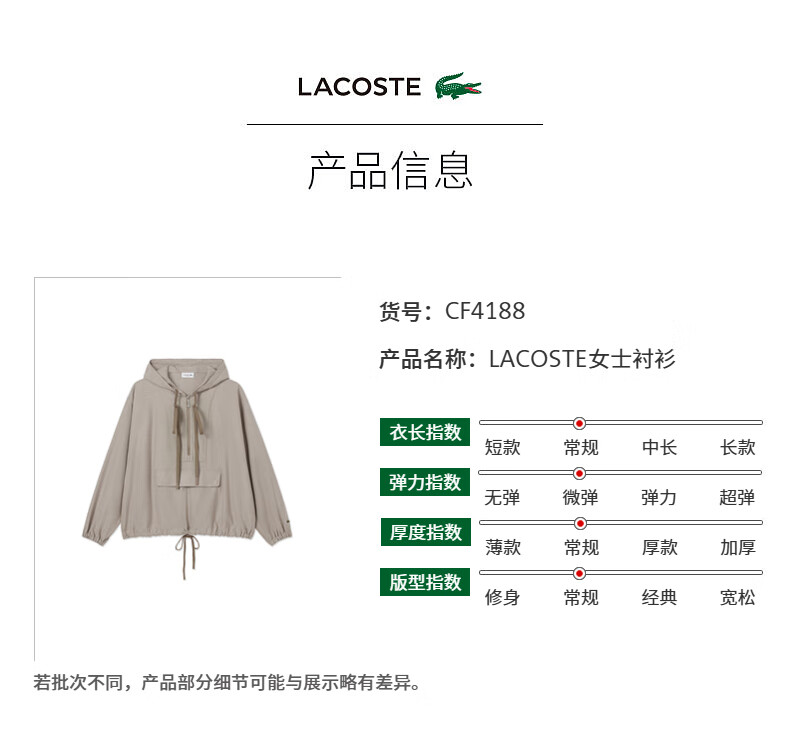 Lacoste法国鳄鱼女装新款时尚休闲半拉链连帽套头衫CF4188-10