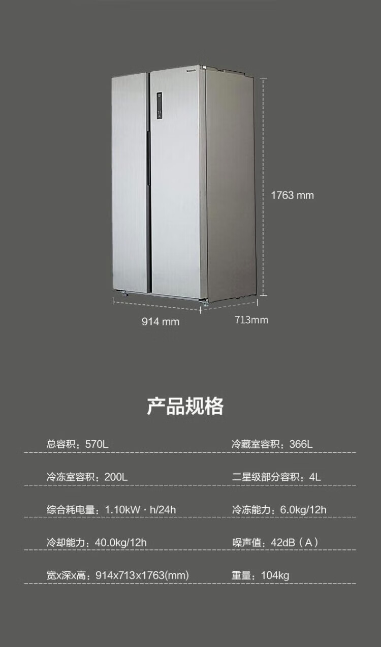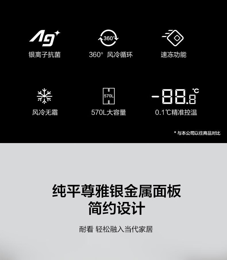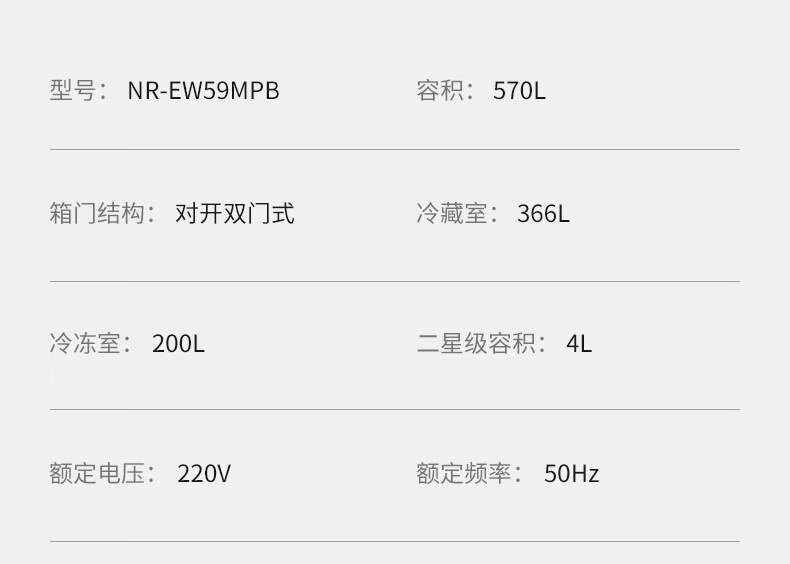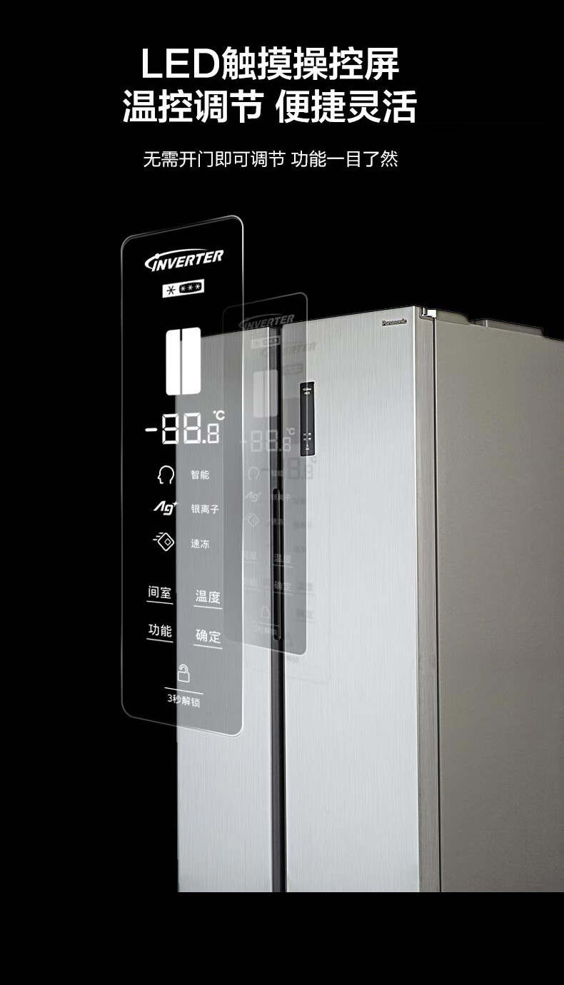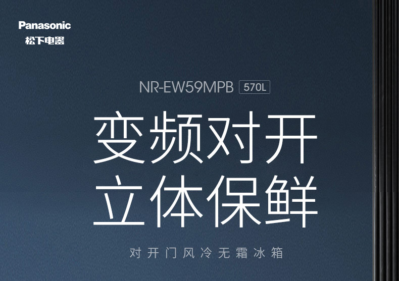 松下(Panasonic)570L 大容量 家用冰箱 一键智能速冻锁鲜变频低噪风冷无霜 银离子除菌 双开门对开门 冰箱 NR-JW59MSB-S(银色)/NR-EW59MPB-N(金色)