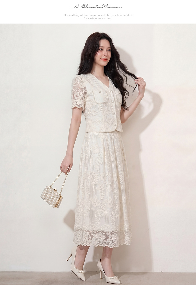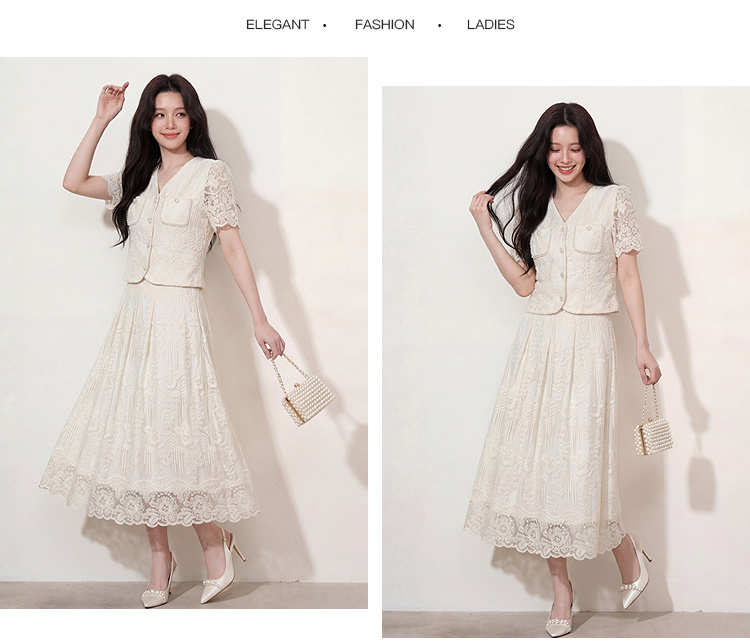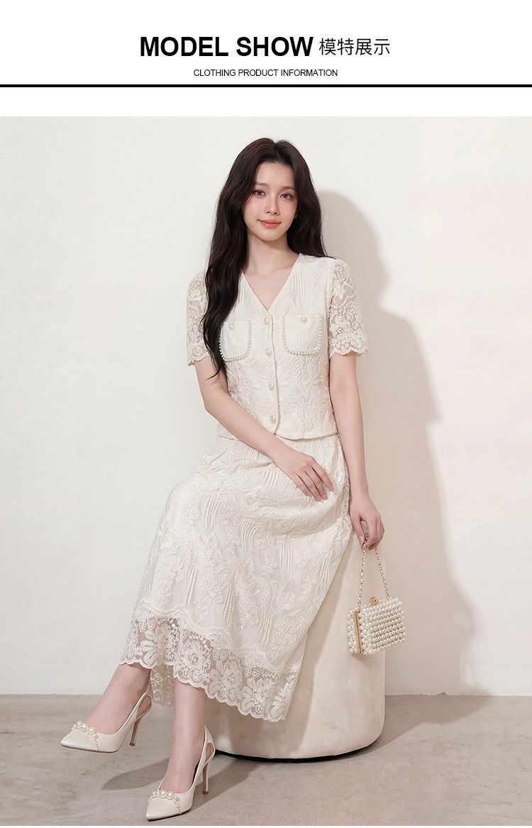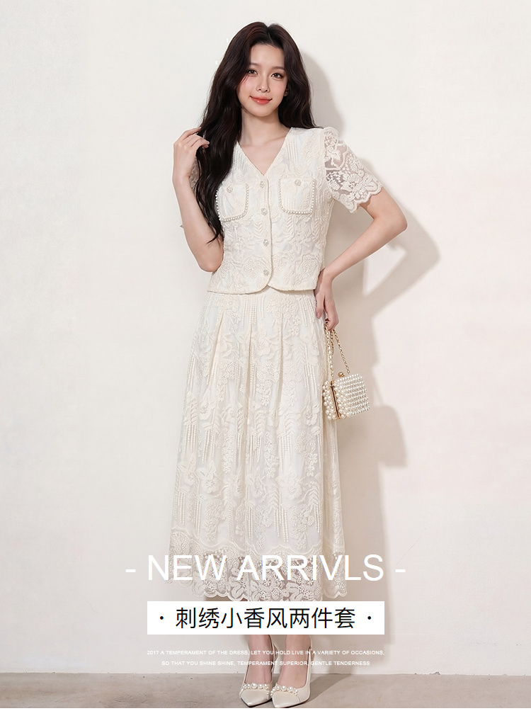 奢姿大码2026夏季重工蕾丝刺绣小香风两件套胖妹妹遮肉气质套装9962960128