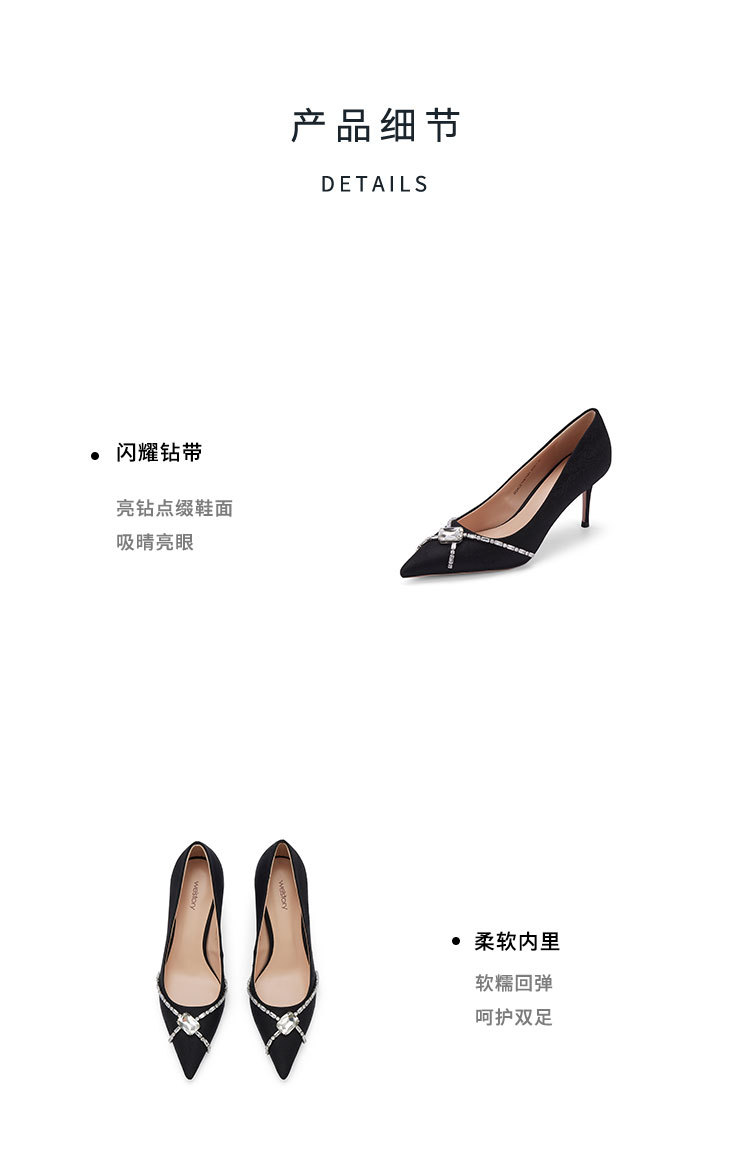westory春秋新款时尚优雅单鞋水钻气质百搭细高跟单鞋女W24CE74621