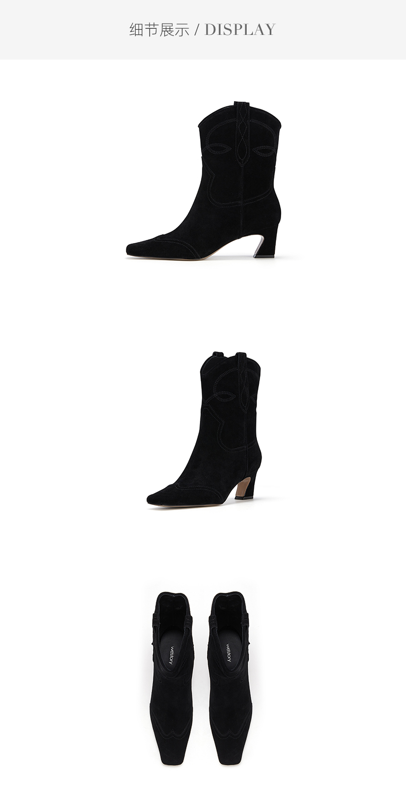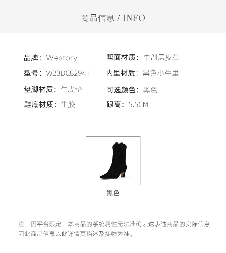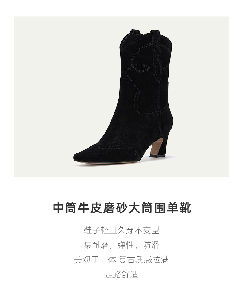 westory秋季新品中筒牛皮磨砂大筒围单靴百搭时装短靴W23DC82941