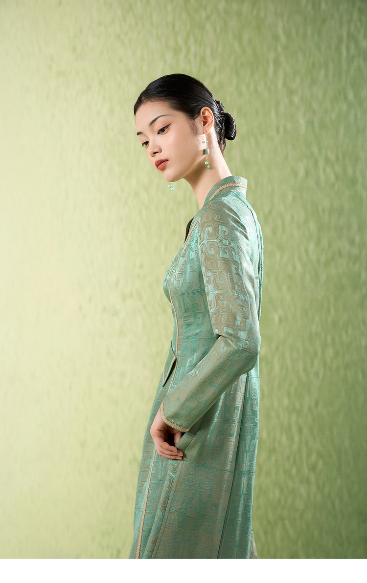 吉祥衣家新中式国风高定真丝高端气质显瘦修身女装一言九鼎连衣裙