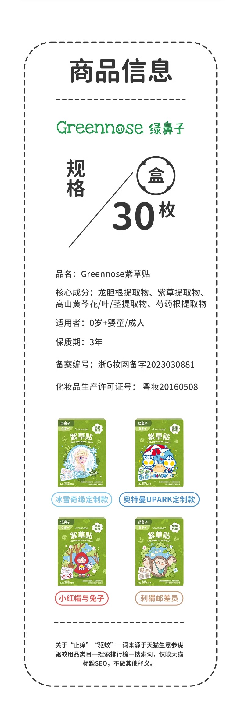 绿鼻子紫草贴 舒缓贴婴儿专用儿童宝宝止痒膏贴0岁+