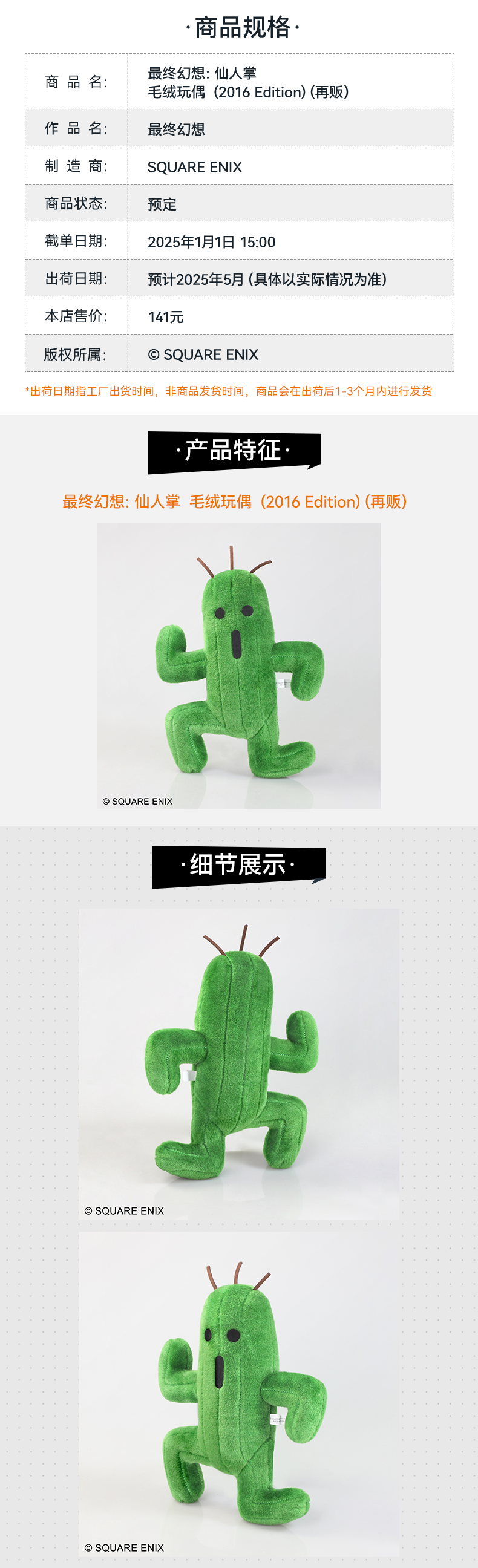 【GSC补款】最终幻想:仙人掌 毛绒玩偶 (2016 Edition)