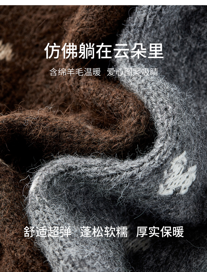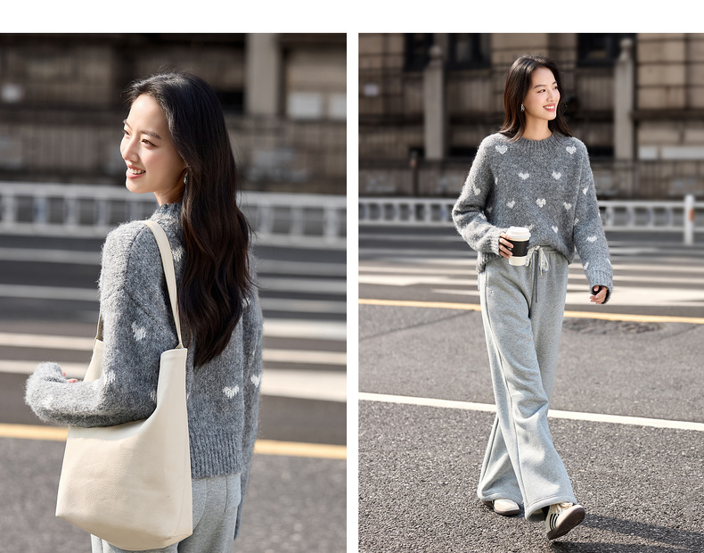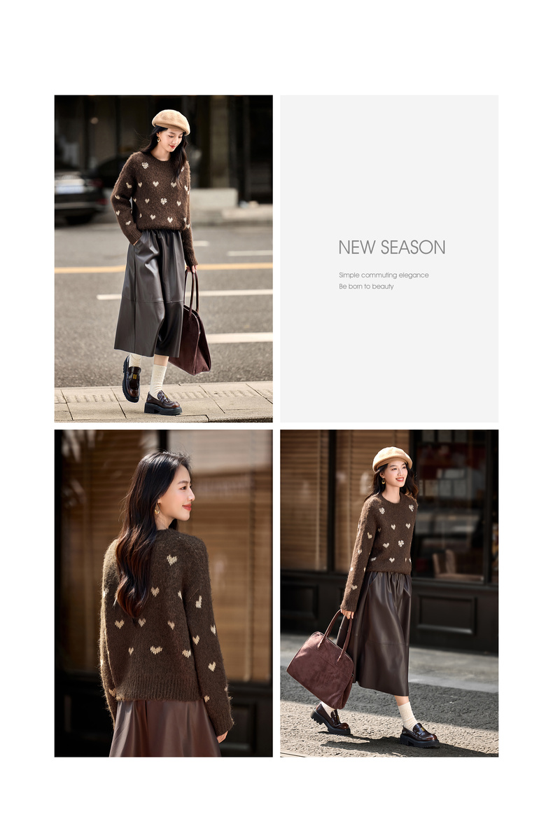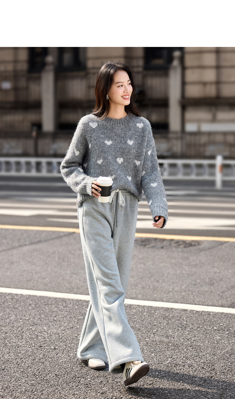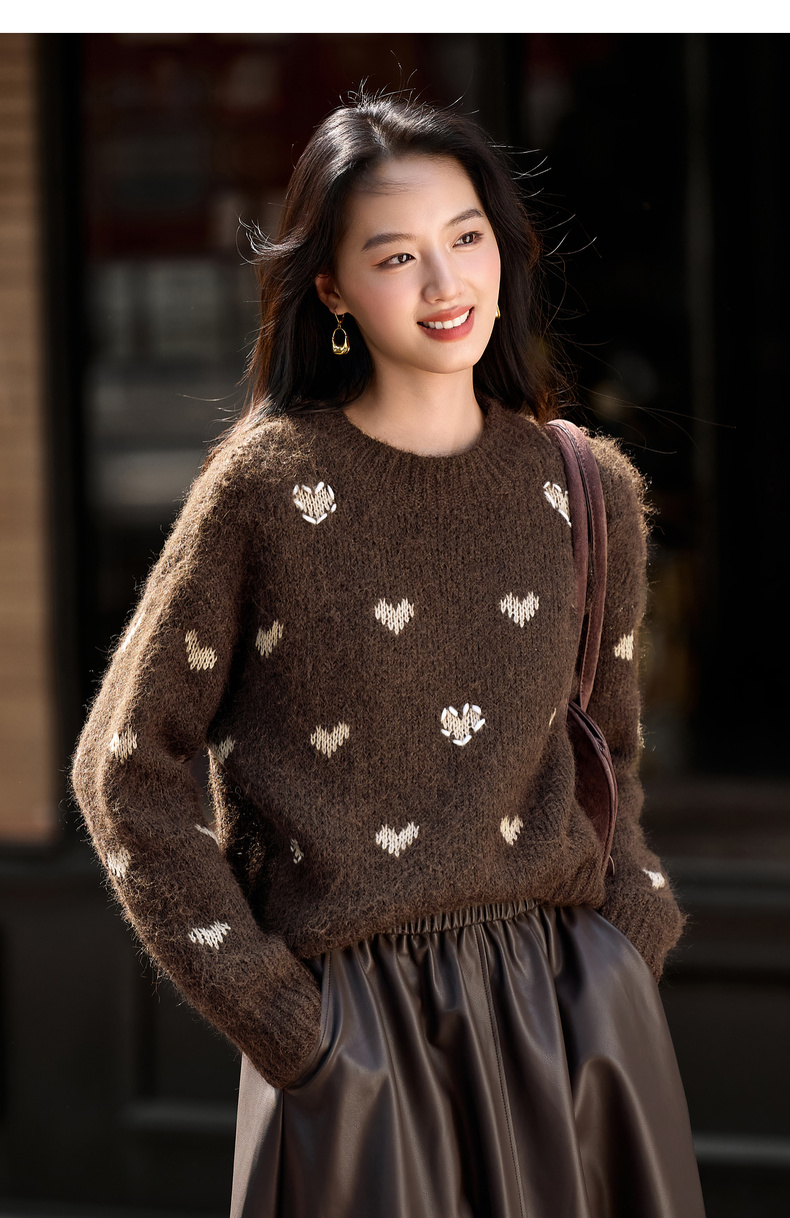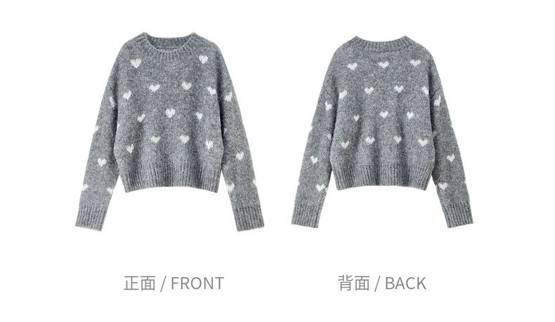 【内购】【手工线迹爱心图案】优雅通勤圆领宽松落肩含绵羊毛厚保暖毛衣-W54EE3769