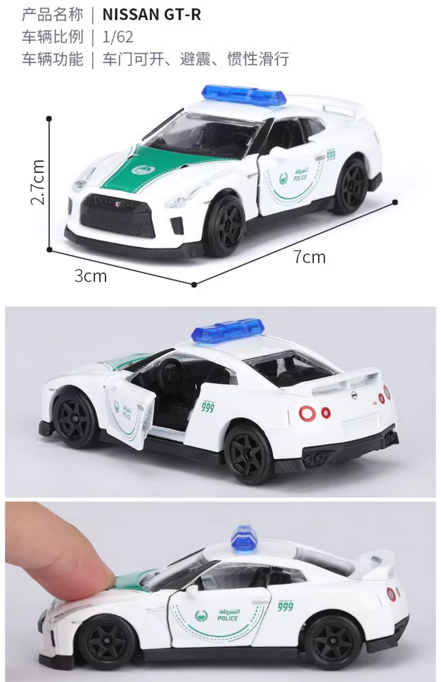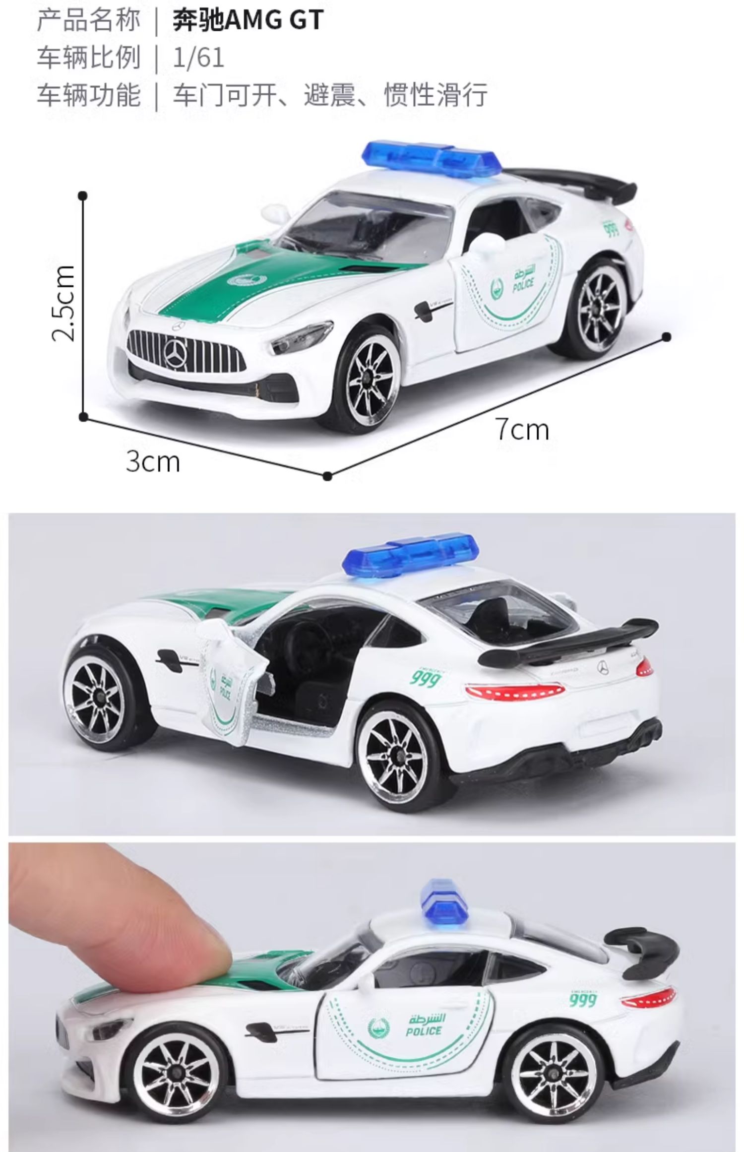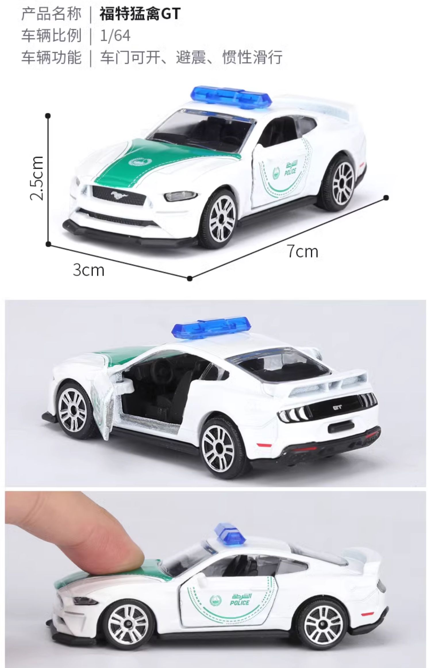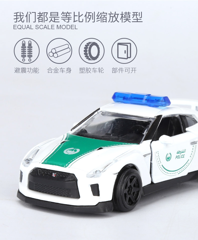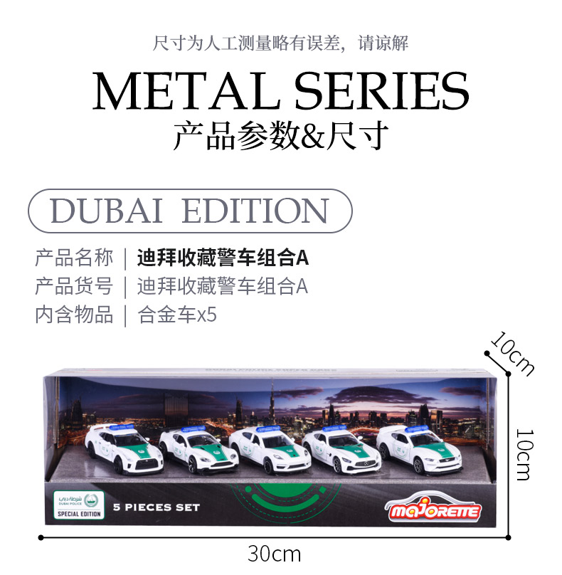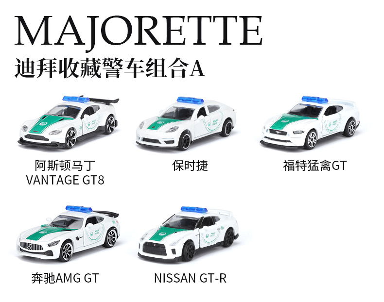 Majorette 美捷轮 迪拜收藏警车组合A | 日产GTR福特野马奔驰GT汽车模型 3岁+