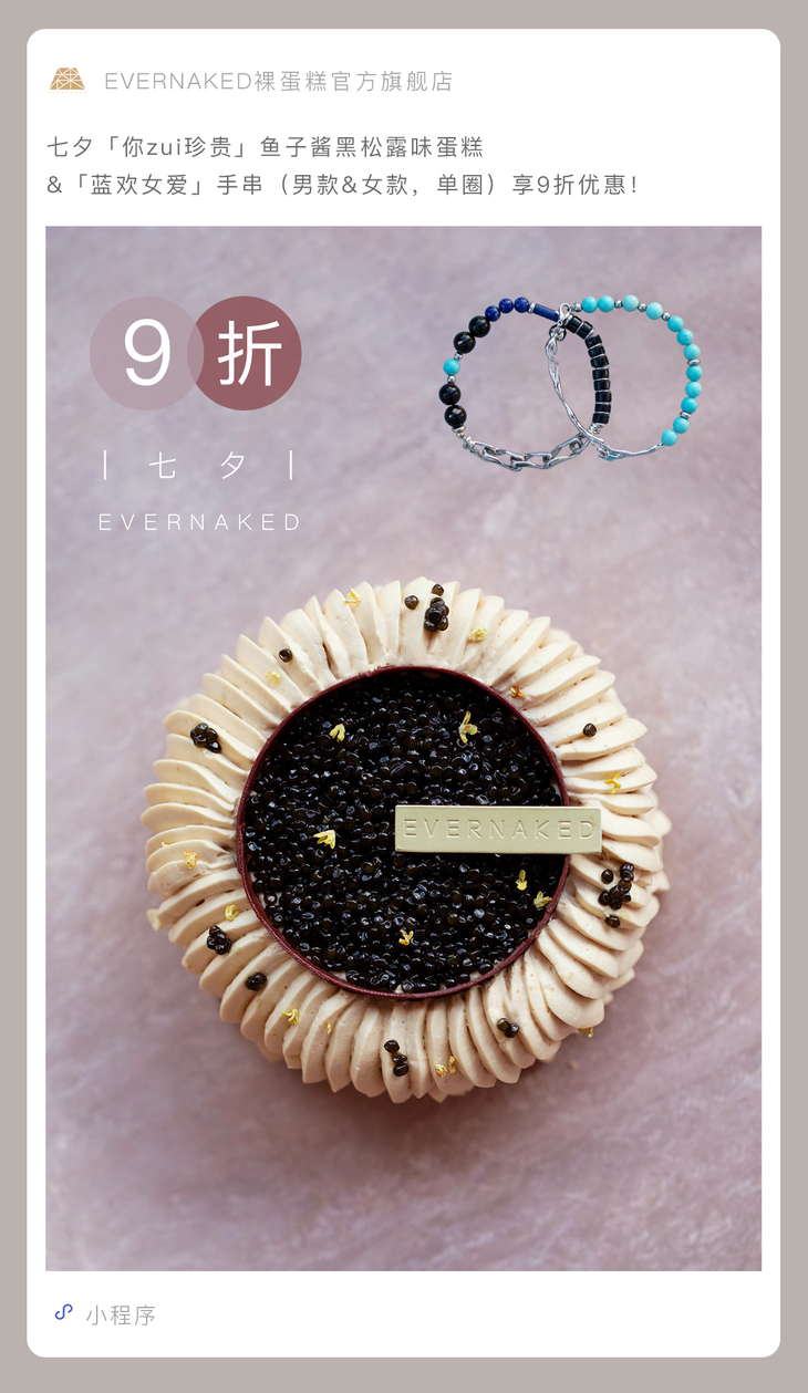 9折优惠|七夕节「你zui珍贵」鱼子酱黑松露味蛋糕 & 七夕节「蓝欢女爱」手串