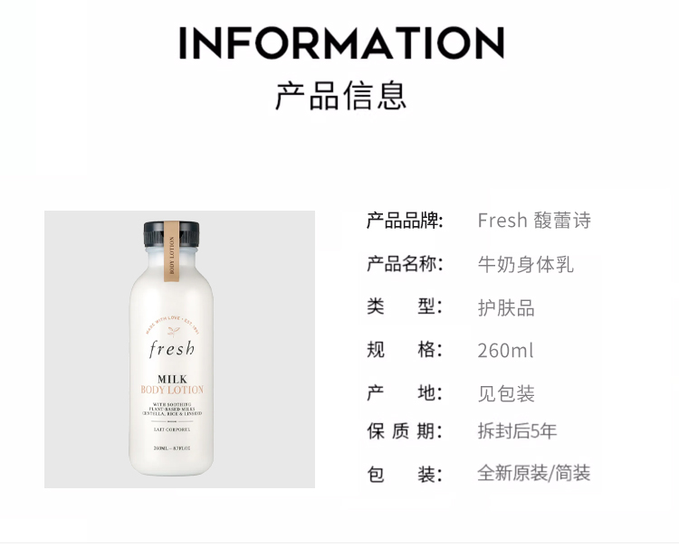 【保税仓】Fresh 馥蕾诗 牛奶沐浴露260ml 与 Fresh 馥蕾诗 牛奶身体乳260ml 组合