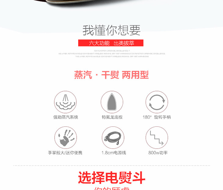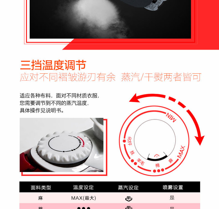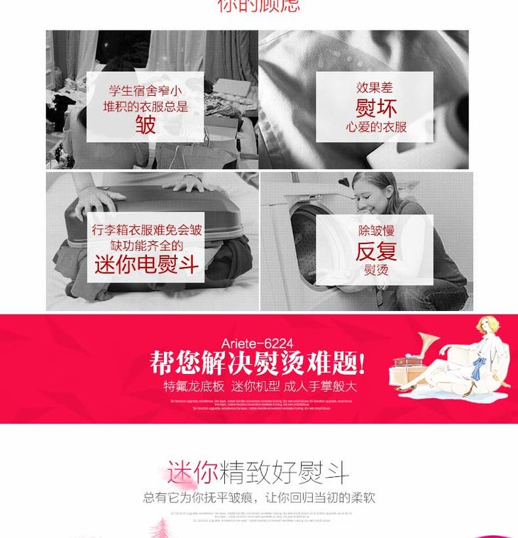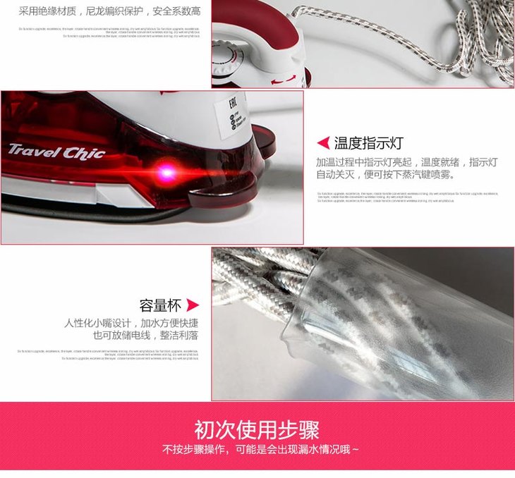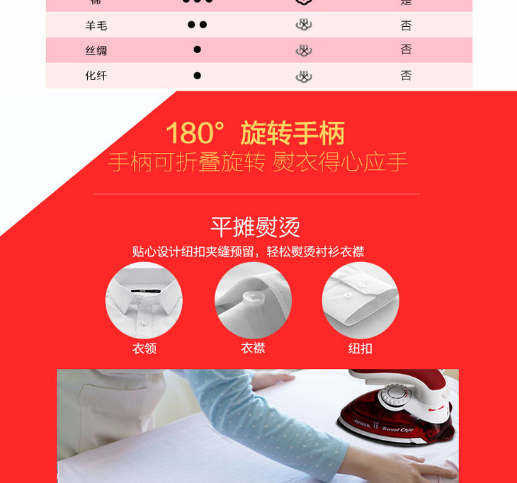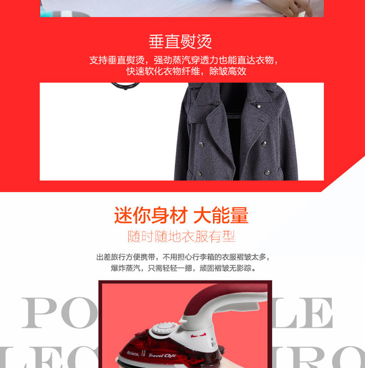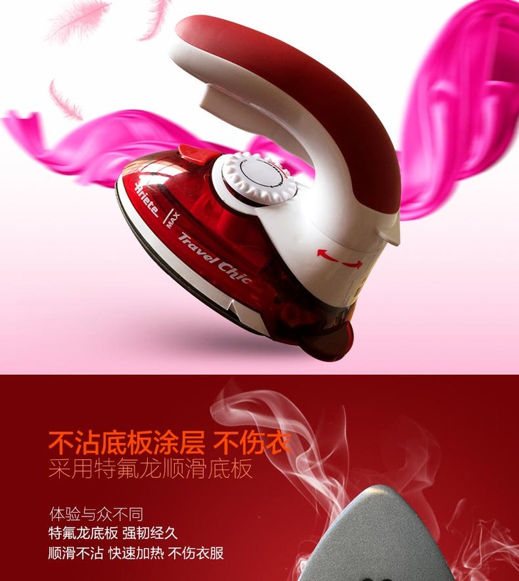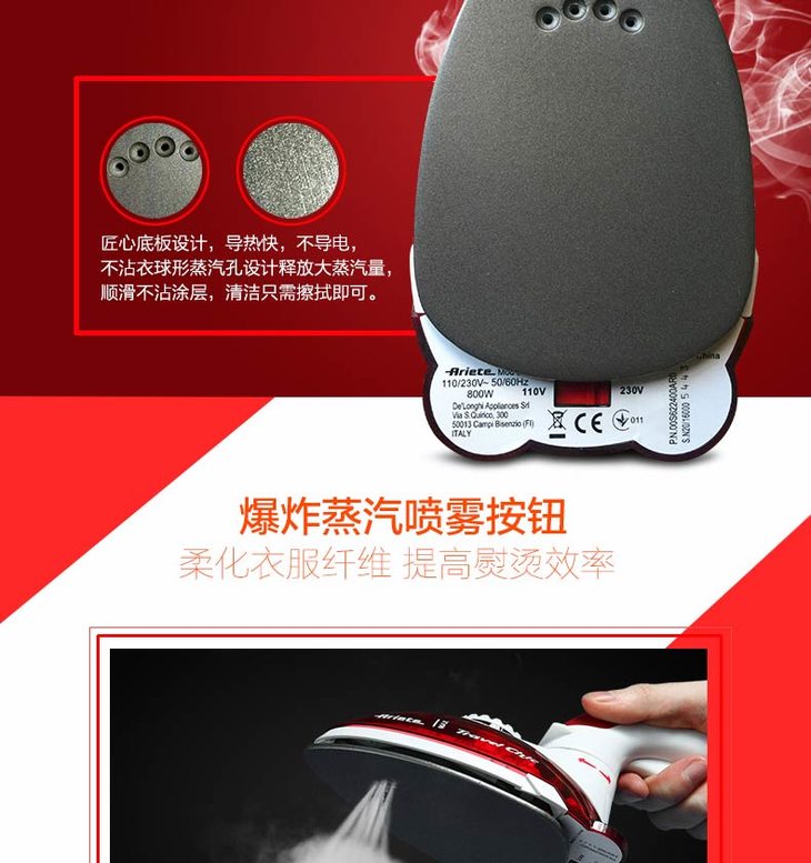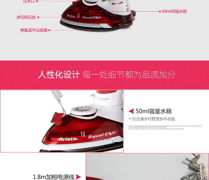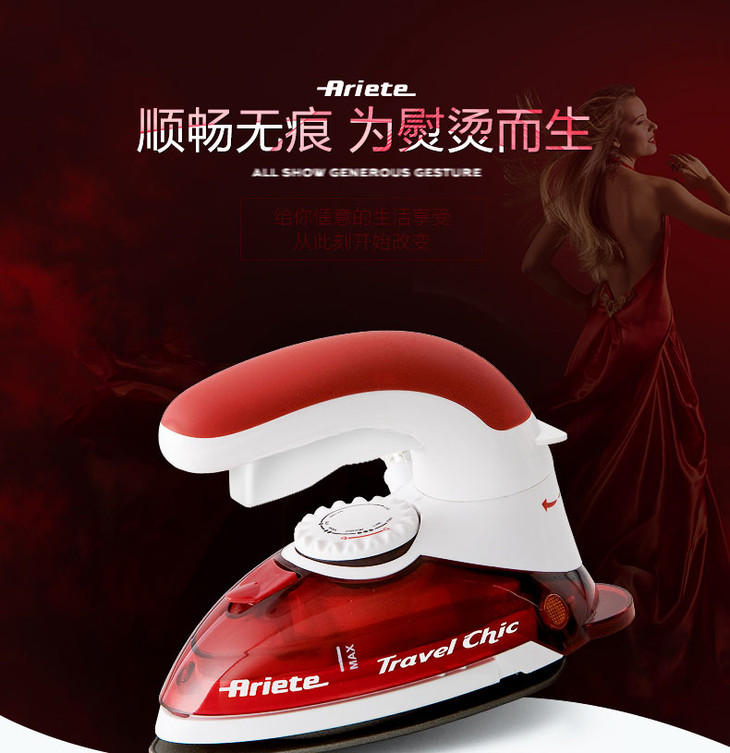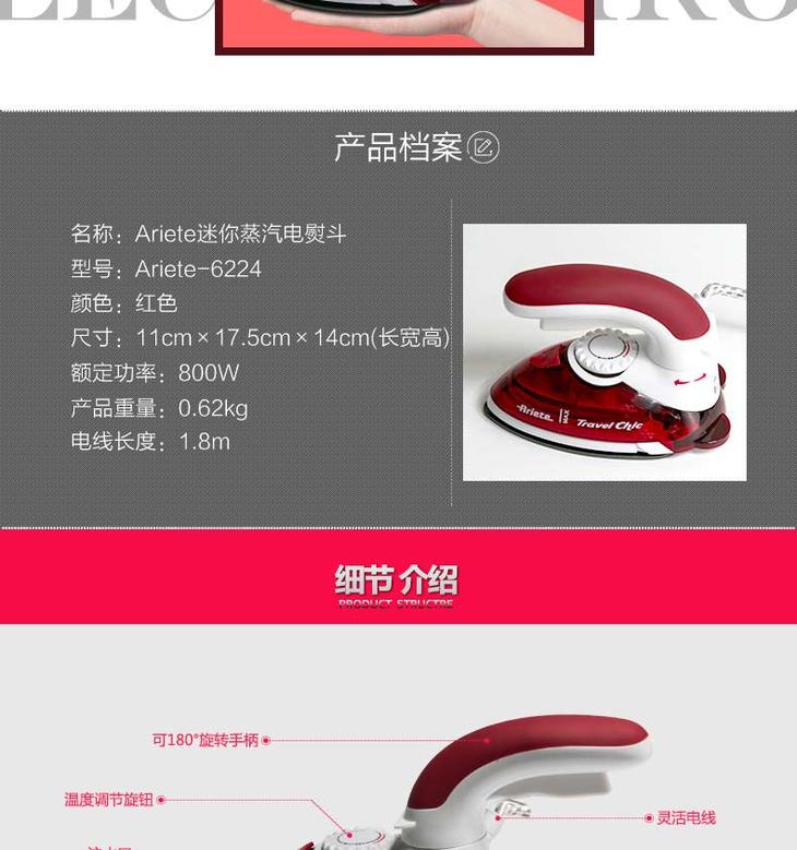 【阿里亚特】阿里亚特(Ariete)意大利迷你电熨斗6224家用蒸汽熨衣3档800w红色