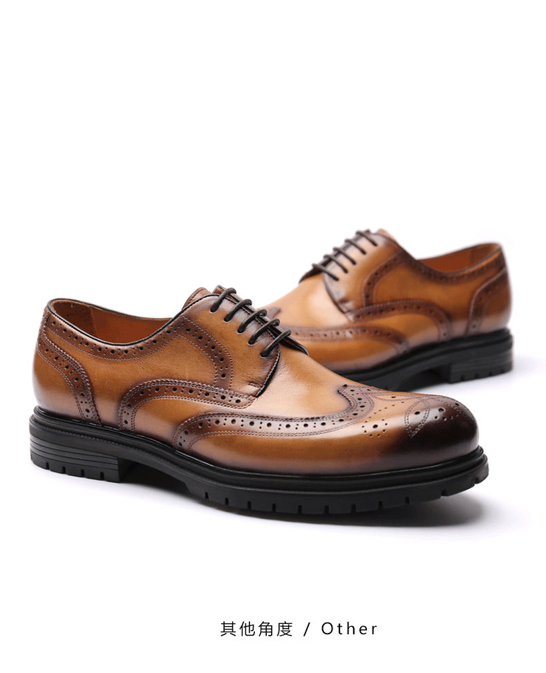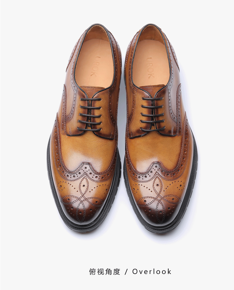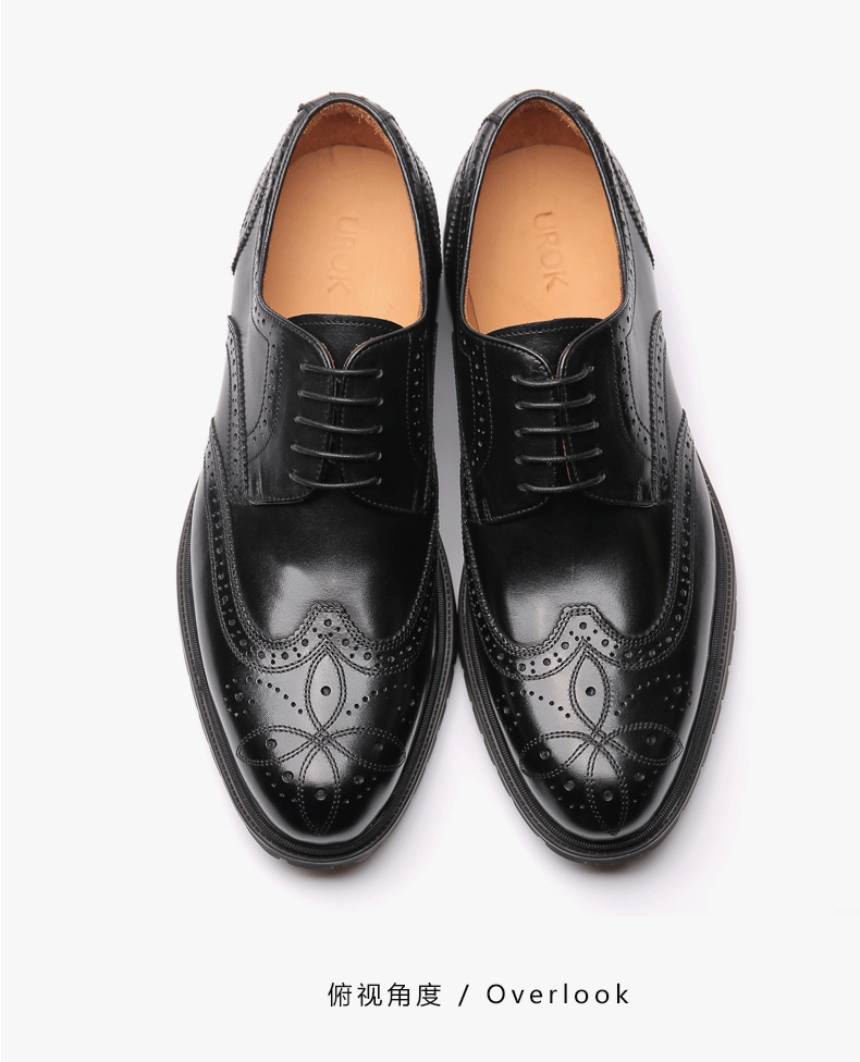 【新品】UROK男士手工布洛克雕花休闲德比鞋时尚男鞋