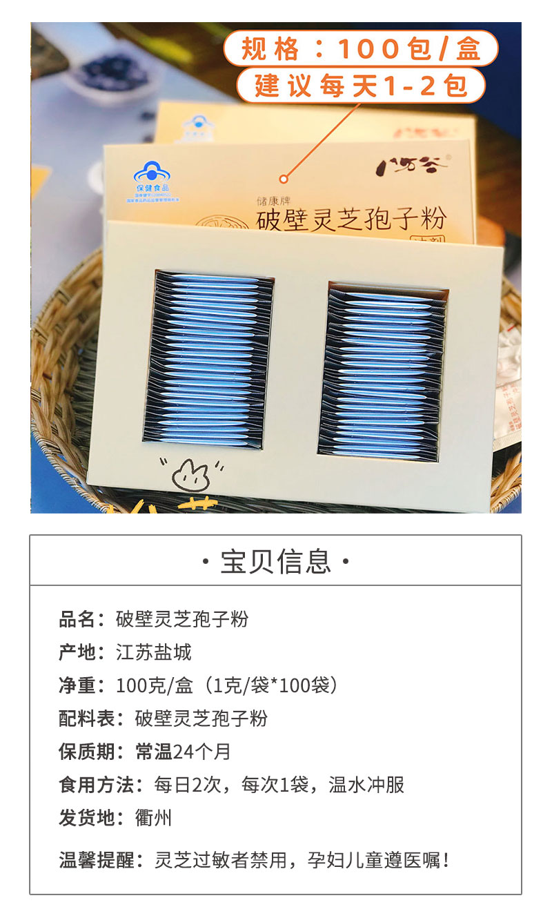 【破壁灵芝孢子粉】有机仿野生种植,蓝帽子认证,破壁率高达99.1%