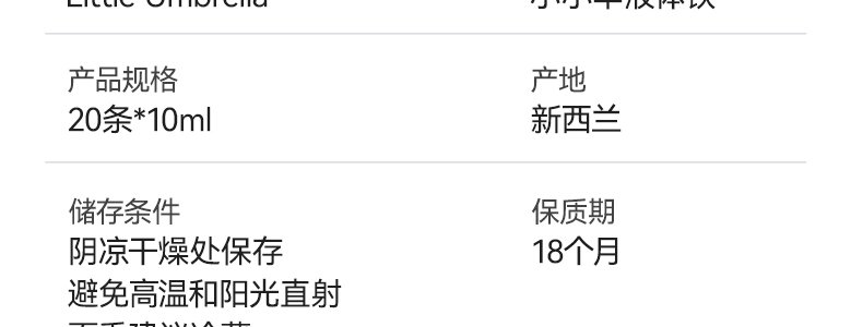 【保税】新西兰 小小伞(Little Umbrella)儿童液体铁 20条/盒