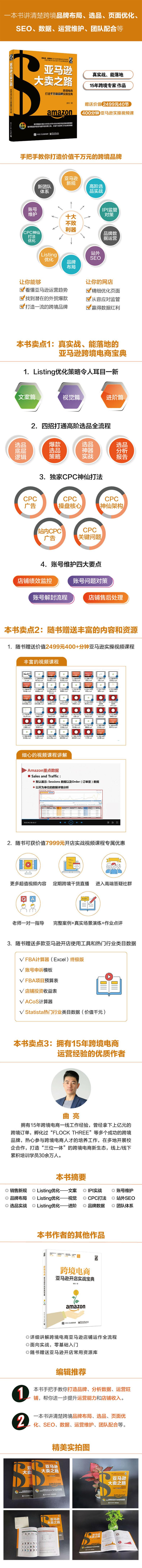 近年来,跨境电商发展势头强劲,尤其是在全球经济产业转型及国内大循环的政策背景下,各方资本及势力纷纷加入,呈现出一派欣欣向荣的景象。亚马逊成为备受全球卖家青睐的跨境电商平台之一。而随着行业规模的扩大和卖家数量的激增,加之平台规则的频繁变动,卖家朋友们在店铺运营中屡屡碰壁,不知所措,于是想要寻求更多的书籍及文章来答疑解惑。特别是有经验的卖家朋友们,对我的前一本书《跨境电商亚马逊开店实战宝典》的基础实操已了然于胸,迫切需要高阶的运营策略及技巧,本书的推出正合时宜。本书逻辑结构依然延续了前一本书的逻辑结构,以跨境电商的运营内容为基础,向大家展示了电商运营中的实战技法。但相比前一本书的基础操作,本书的内容干货满满,同时对运营实操知识加重了笔墨,比如第3章中的高阶选品,第4~6章中的优化进阶,第7章中的IPI新规Tips等,都将给读者朋友们带来全新的运营理念和实战技巧;而在CPC广告方面,鉴于亚马逊A......