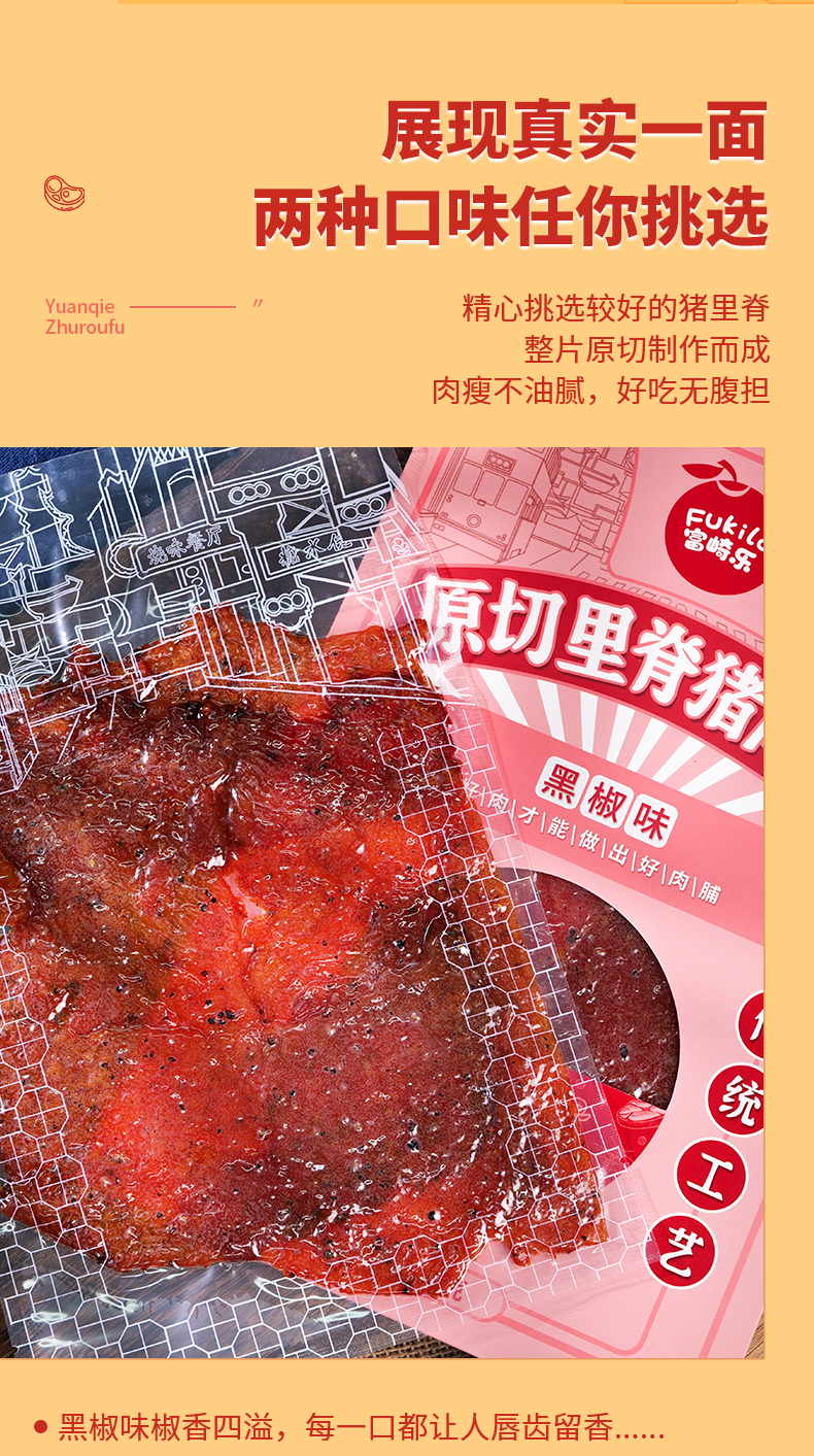 富崎乐原切里脊猪肉脯原味/黑椒味85g 正片里脊肉精心调制香料 152396/152397