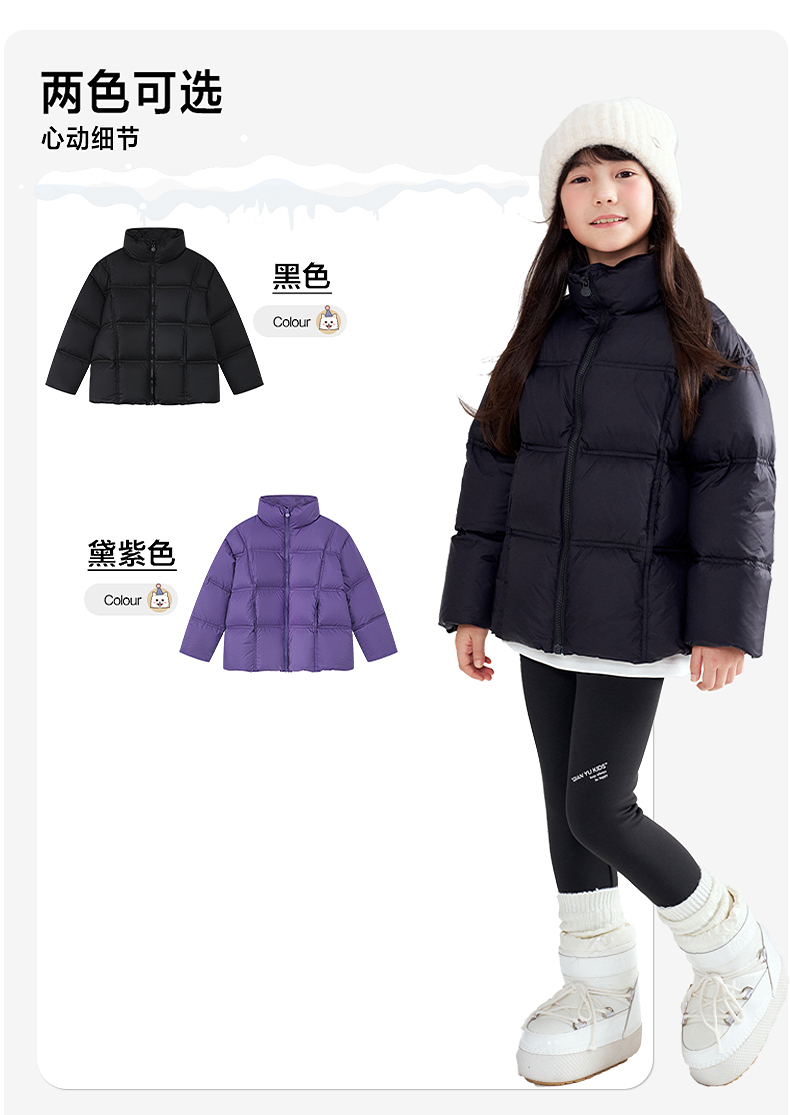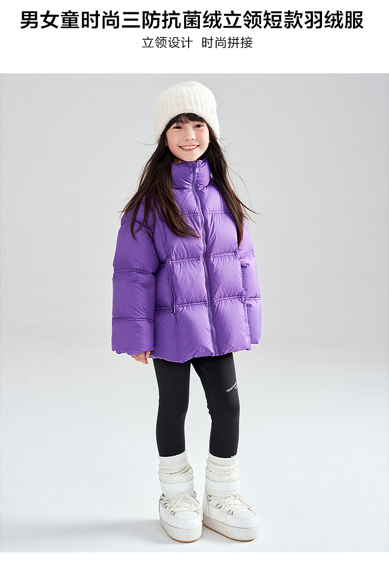 笛莎Deesha 2025冬季新款男女童时尚三防抗菌绒立领短款羽绒服