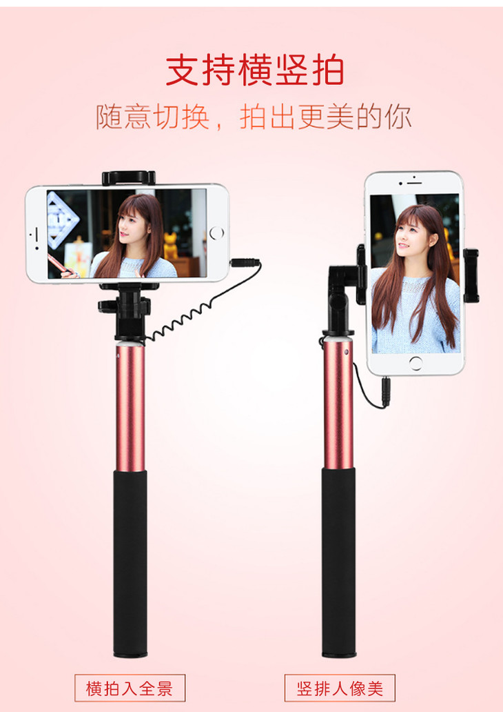 【M8升级自拍杆】潮流爆款旅行必备带后视镜神器 大镜子免蓝牙五合一折叠自拍杆