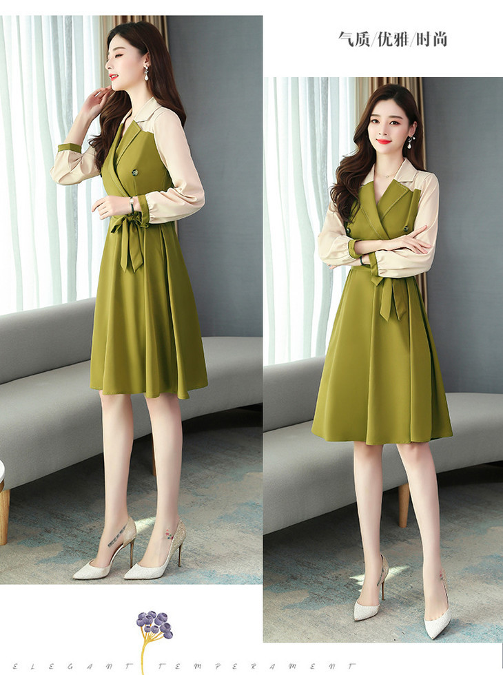 时尚翻领,休闲职业连衣裙AHM-xxj5056
