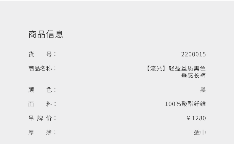 【流光】轻盈丝质黑色垂感长裤/2200015