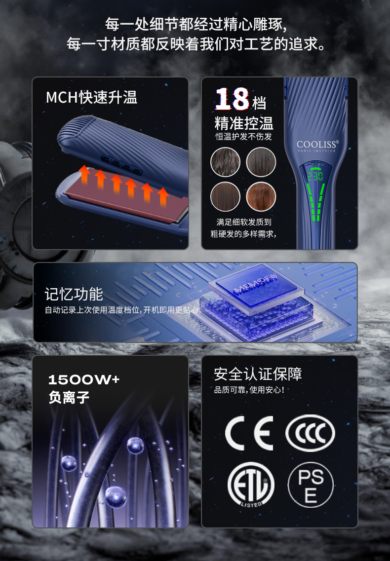 CREATEION 创离子 夹板 月灰系列弧形 直发器