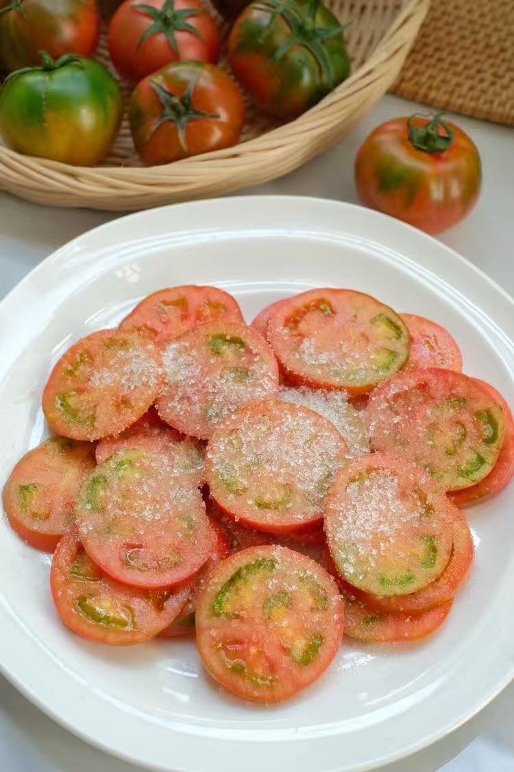 数量极少,自家种植的咸水地,脆甜有味的大番茄,推荐🌟直接生吃,又脆又甜,又果味十足!就是小时候那一口浓郁的番茄🍅,带一分的果酸,瞬间拉回儿时的记忆,沾白糖,贼好吃!