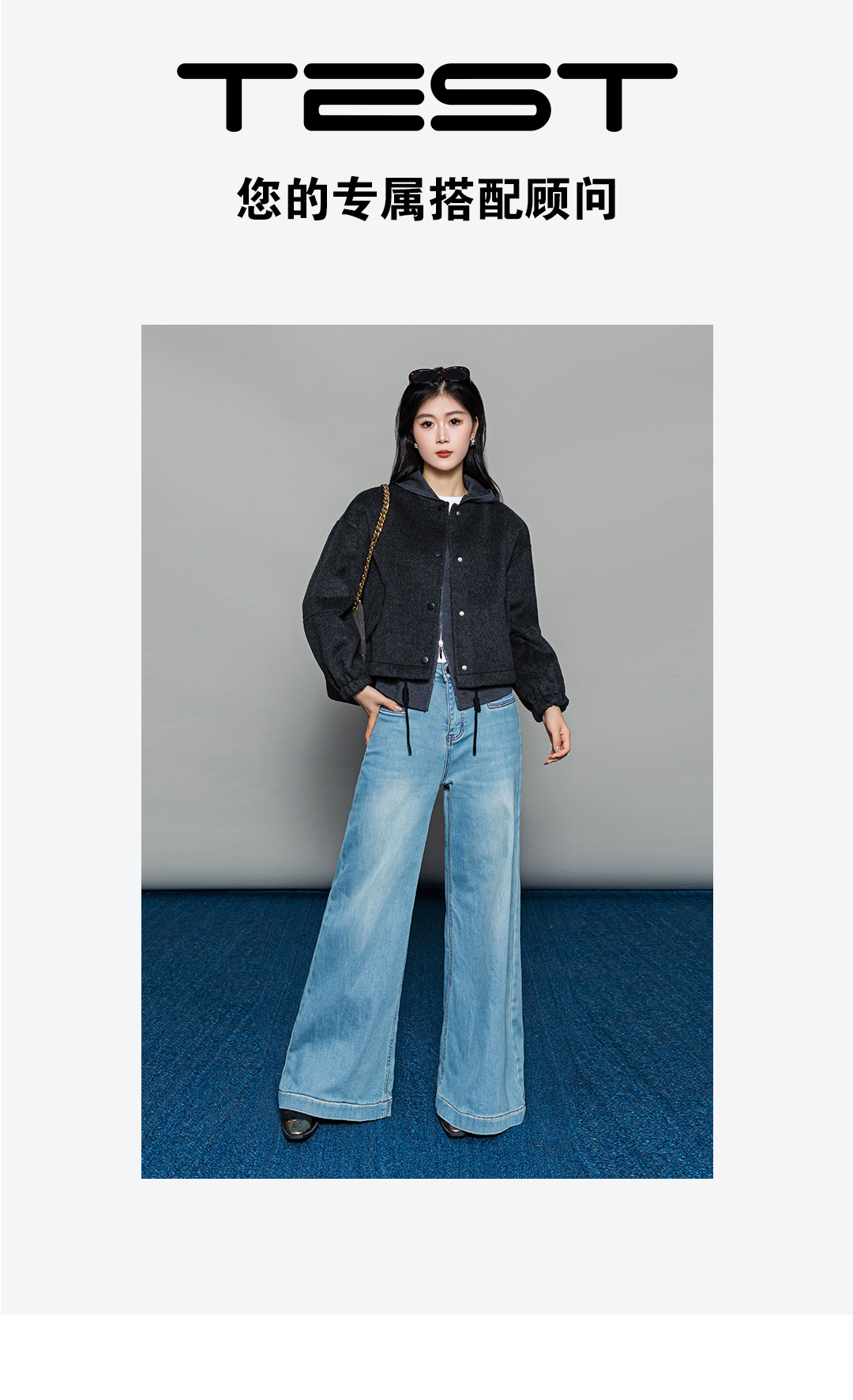 冬上新黑色抽绳收腰舒适又具时尚感双面呢外套2254046 商品图2