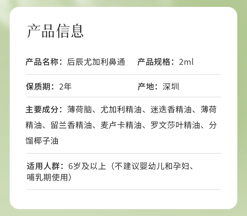 后辰尤加利鼻通【4.16直播-秒杀】清醒提神7种草本原料