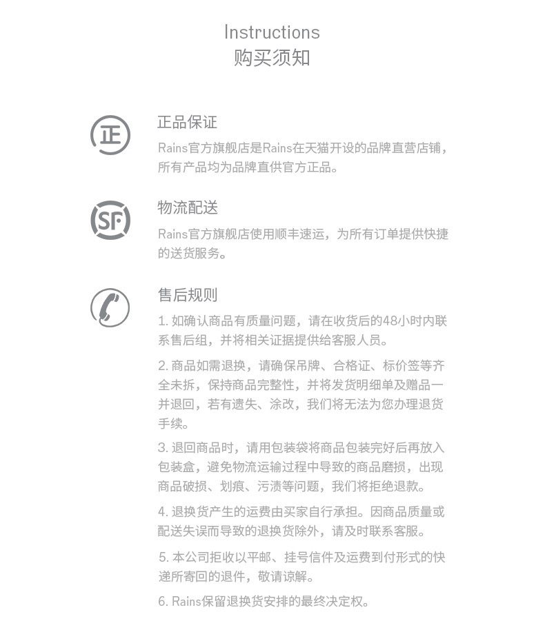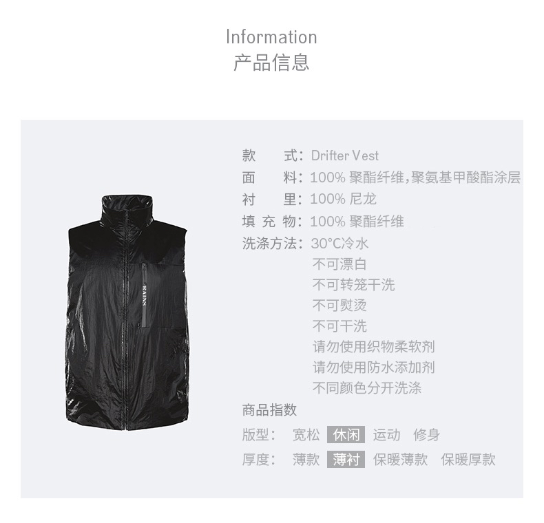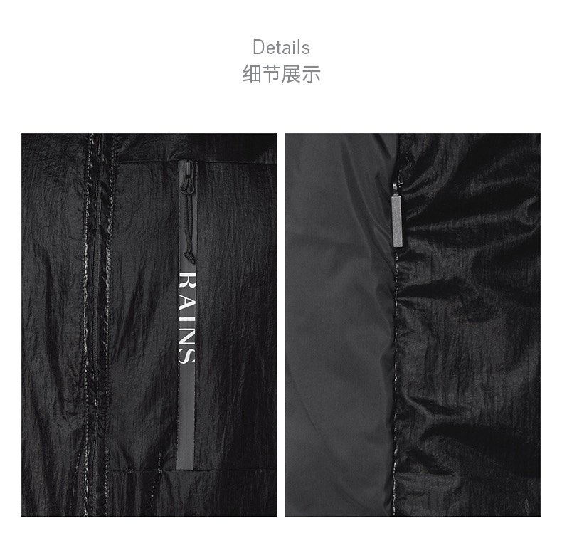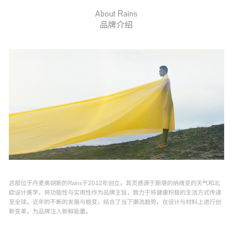 说明:丹麦Rains,防水衣天花板级别。2021秋季新款,pu涂层防水,内夹很薄的棉,防水拉链,接口内缝合。功能性很强,简约帅气。