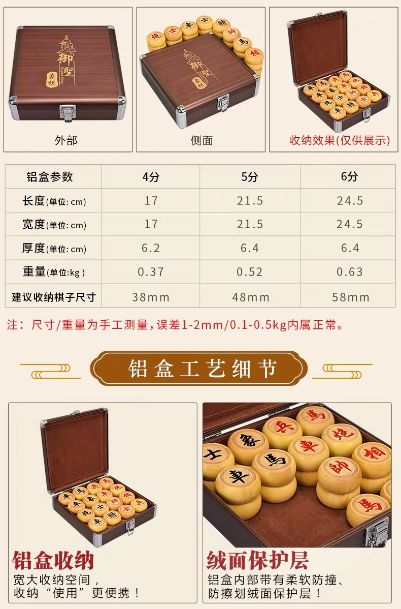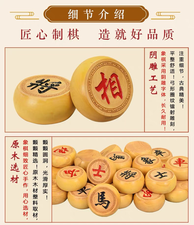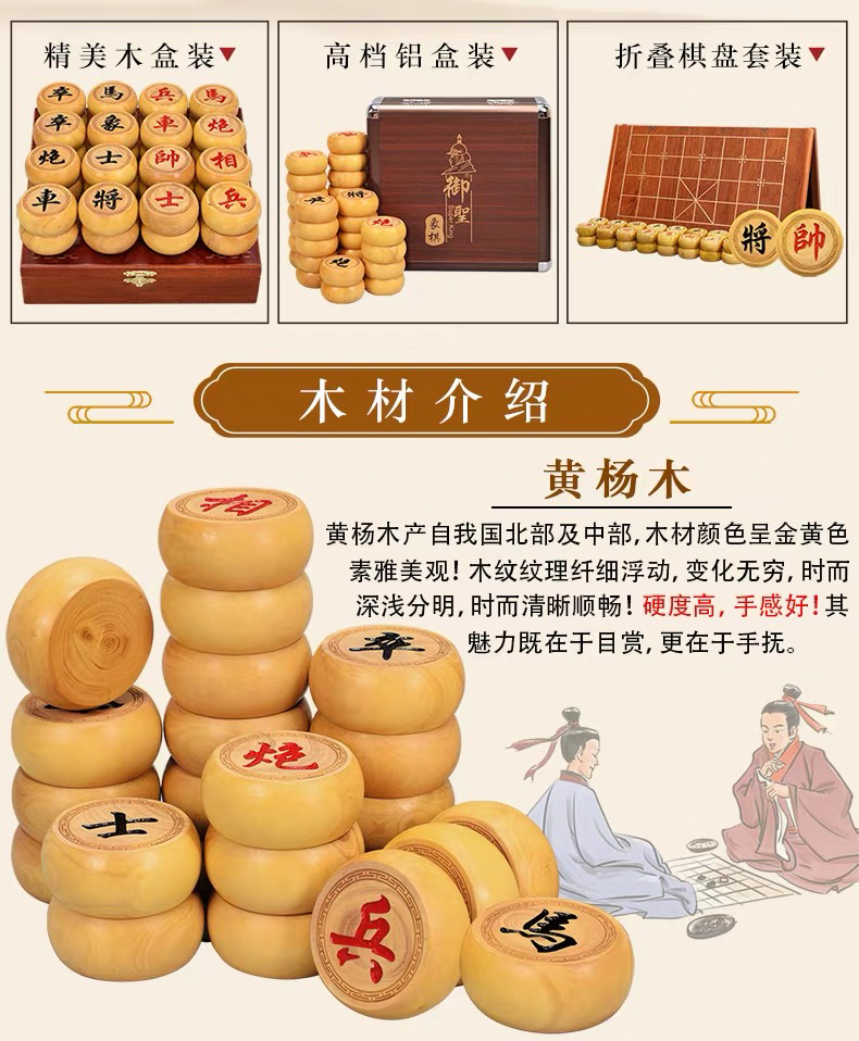 木盒装4分黄杨木中国象棋棋子