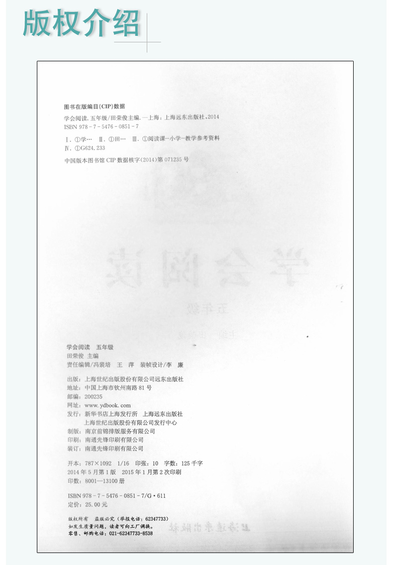 钟书正版辅导书 学会阅读 语文 5年级/五年级 5年级 新课标 教辅 小学语文阅读训练 上海远东出版社 田荣俊