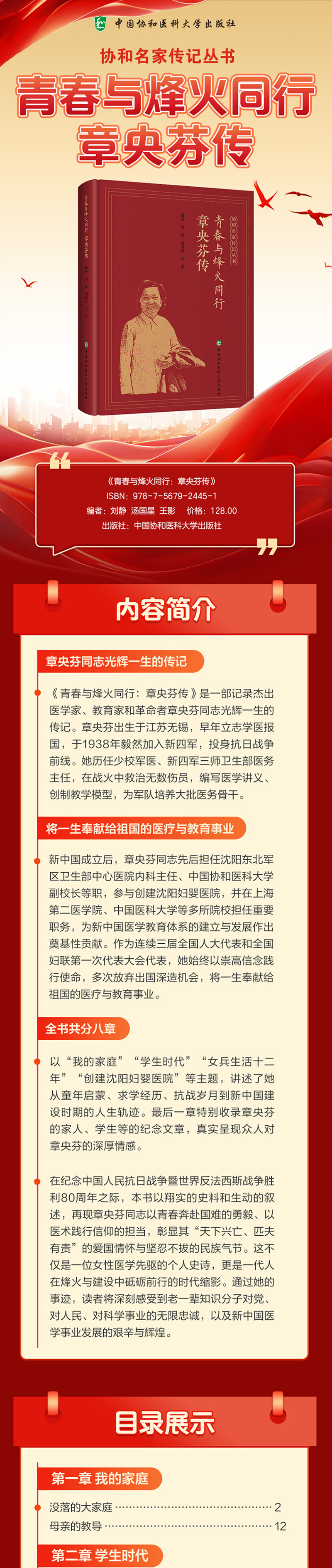 青春与烽火同行 章央芬传 协和名家传记丛书 刘静 汤国星 王影 主编 章央芬同志传记 9787567924451 中国协和医科大学出版社
