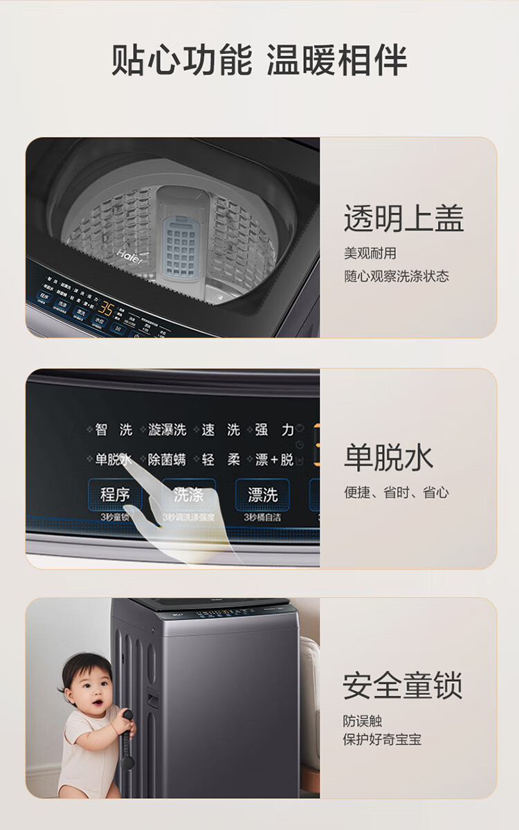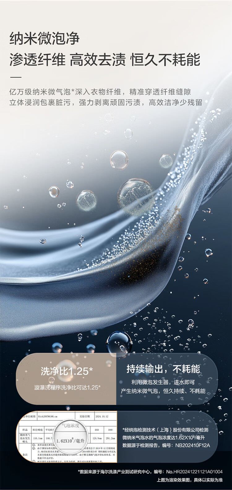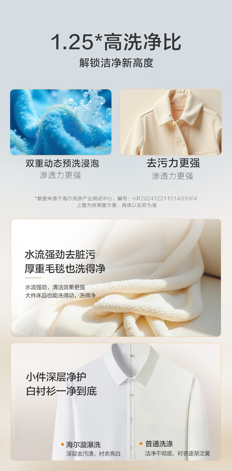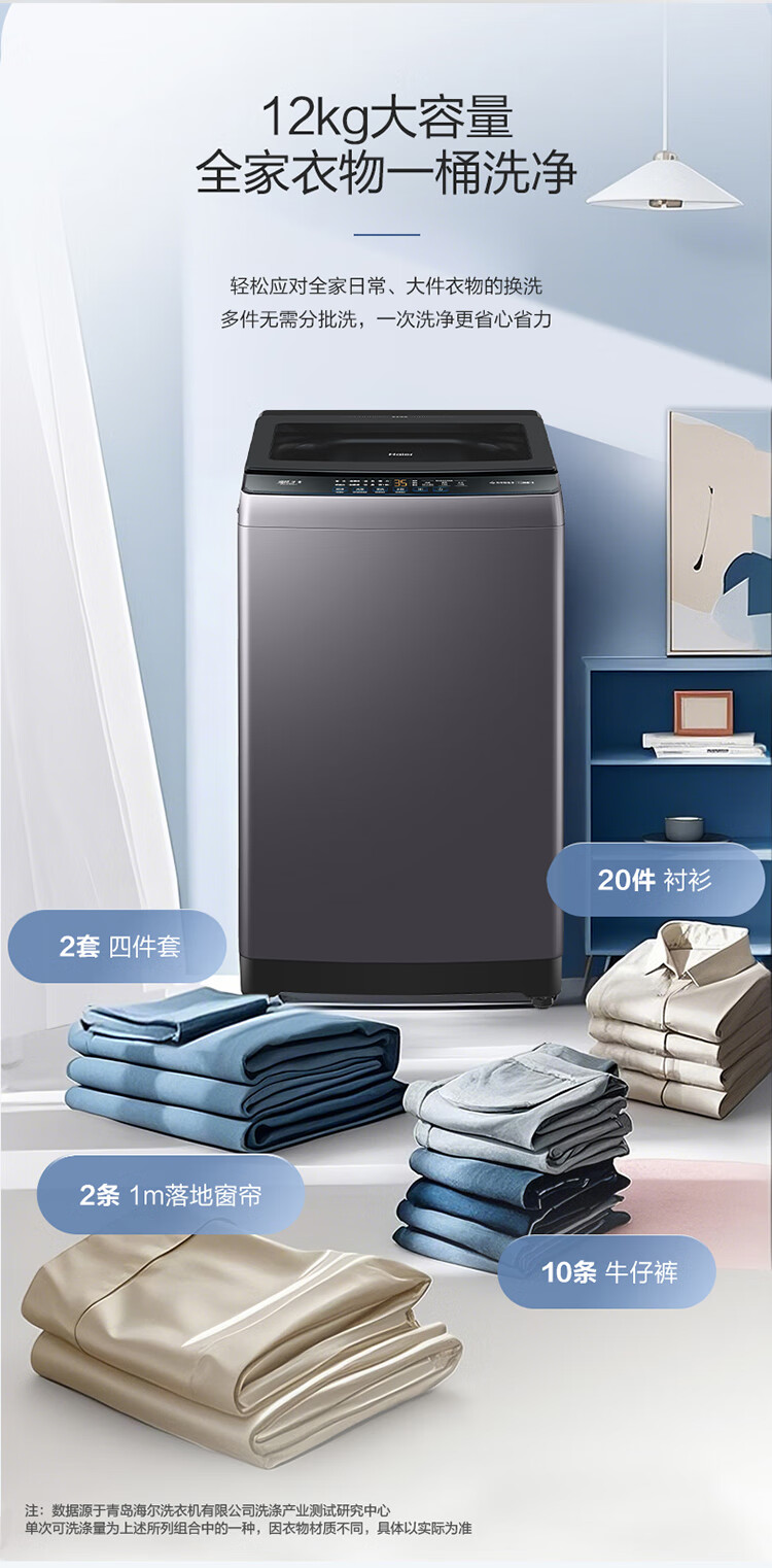 海尔(Haier)波轮洗衣机全自动12公斤大容量家用 直驱变频电离除菌漩瀑洗1.03洗净比BZ20D1一级能效