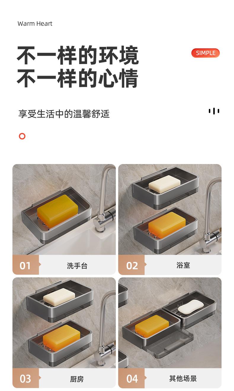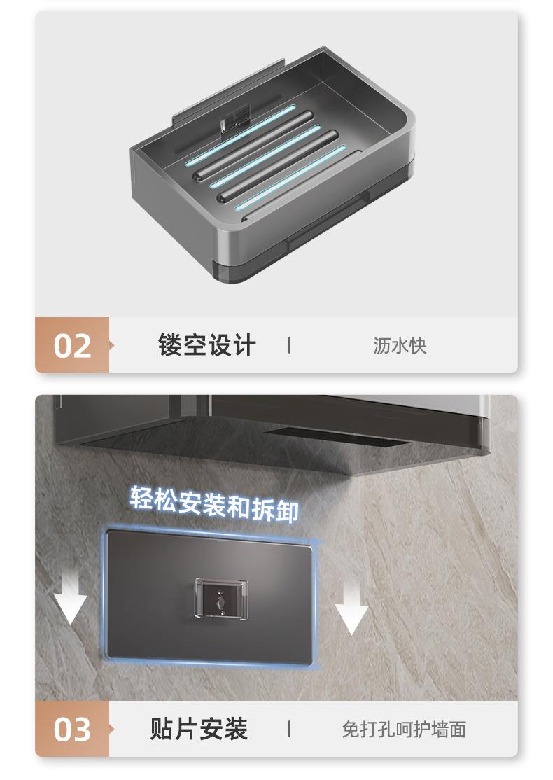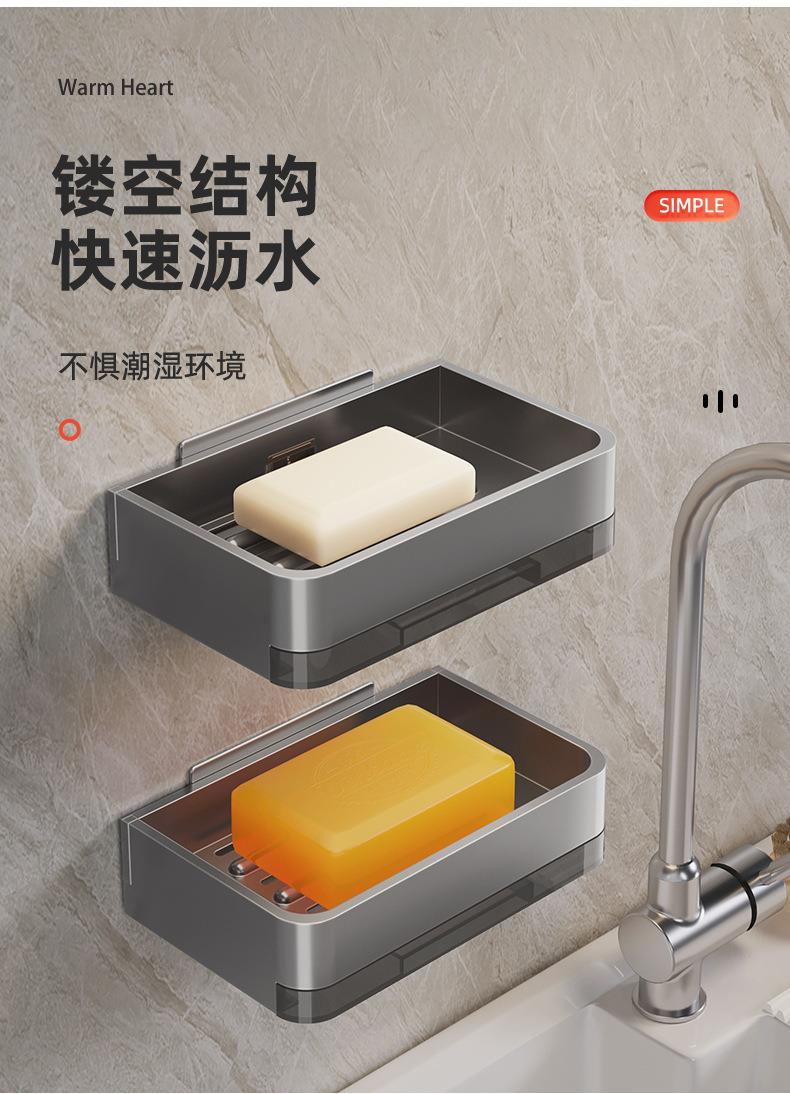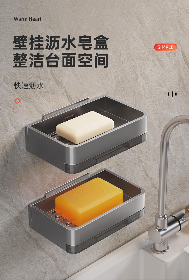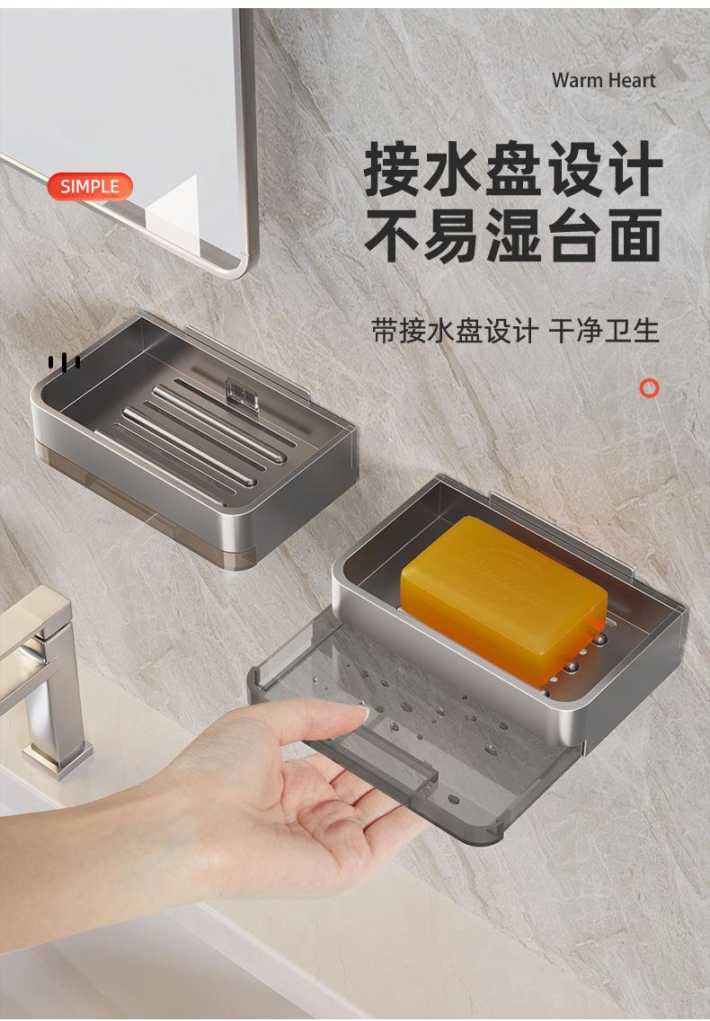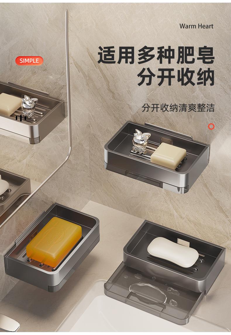 太空铝肥皂盒壁挂式卫生间置物架免打孔浴室香皂盒双层沥水架