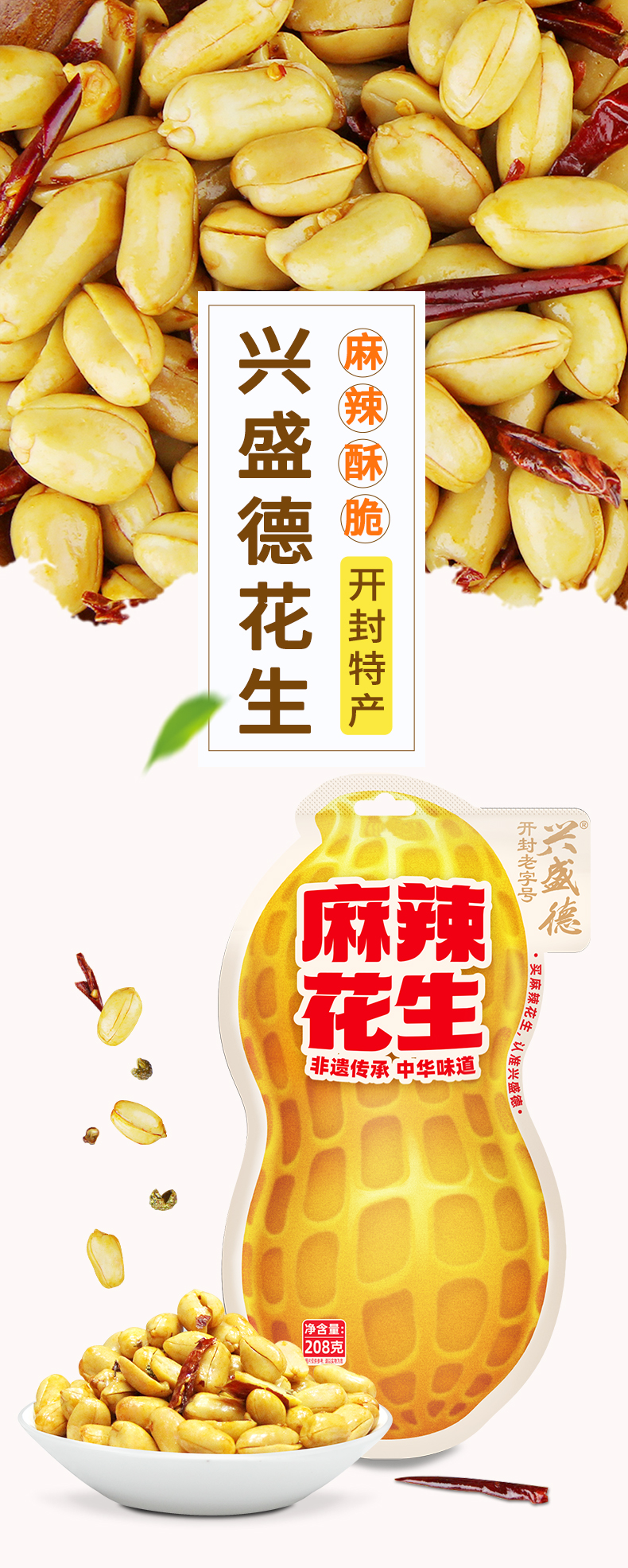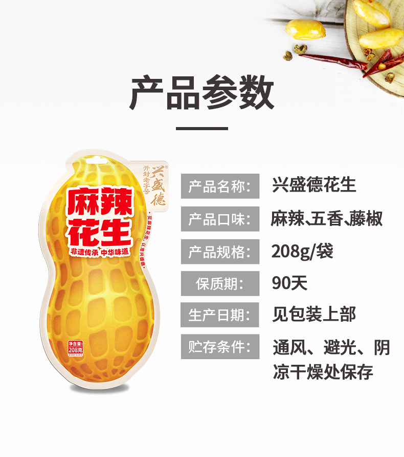 兴盛德官方店208g麻辣花生五香藤椒花生河南开封特产礼物零食坚果
