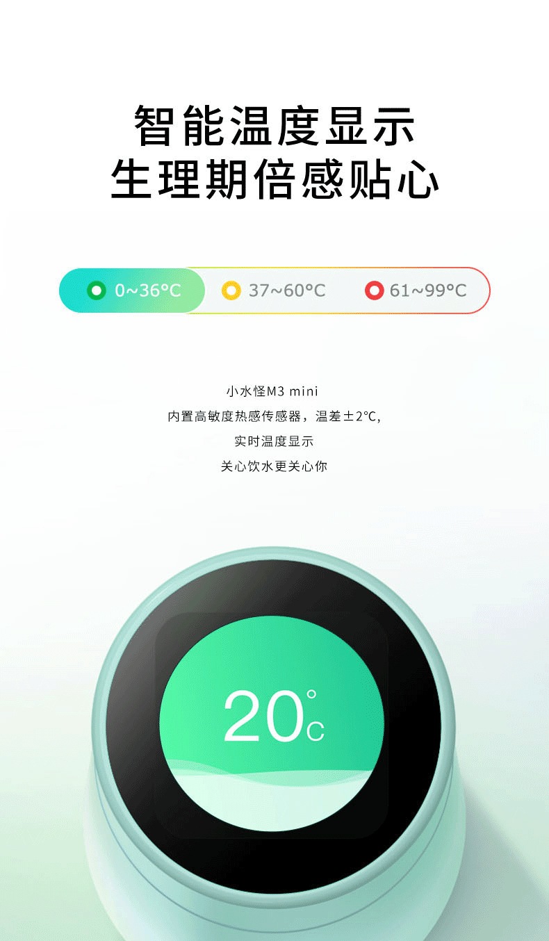 Sguai小水怪M3mini智能充电316不锈钢测显保温杯男女学生便携高颜