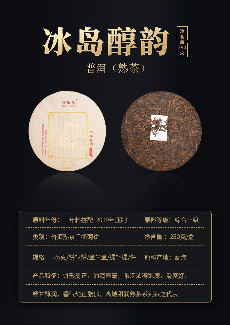 德丰昌手撕薄饼【冰岛醇韵】 普洱茶熟茶茶饼盒装250g