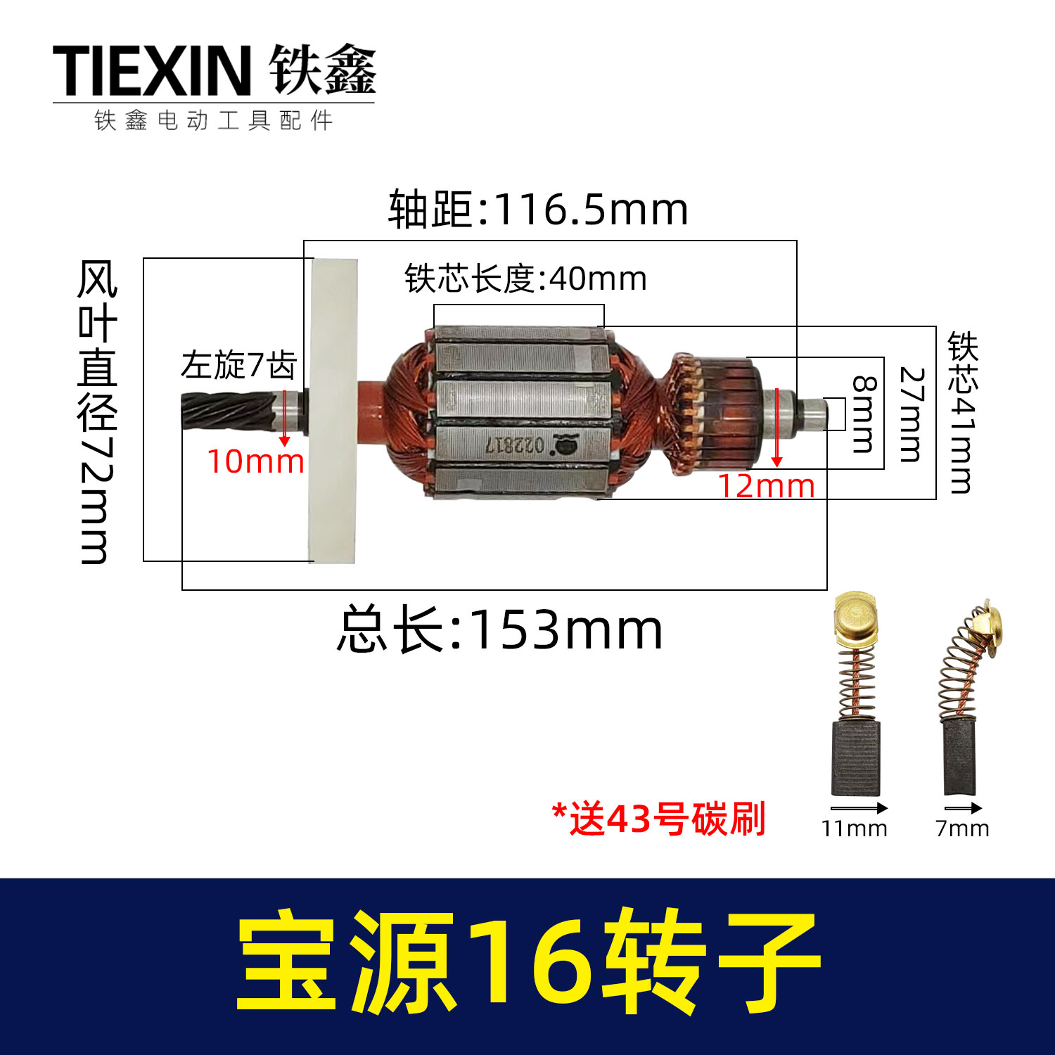 【货号 02115】铁成宝源16电钻转子7齿 飞机钻0816转子电钻配件
