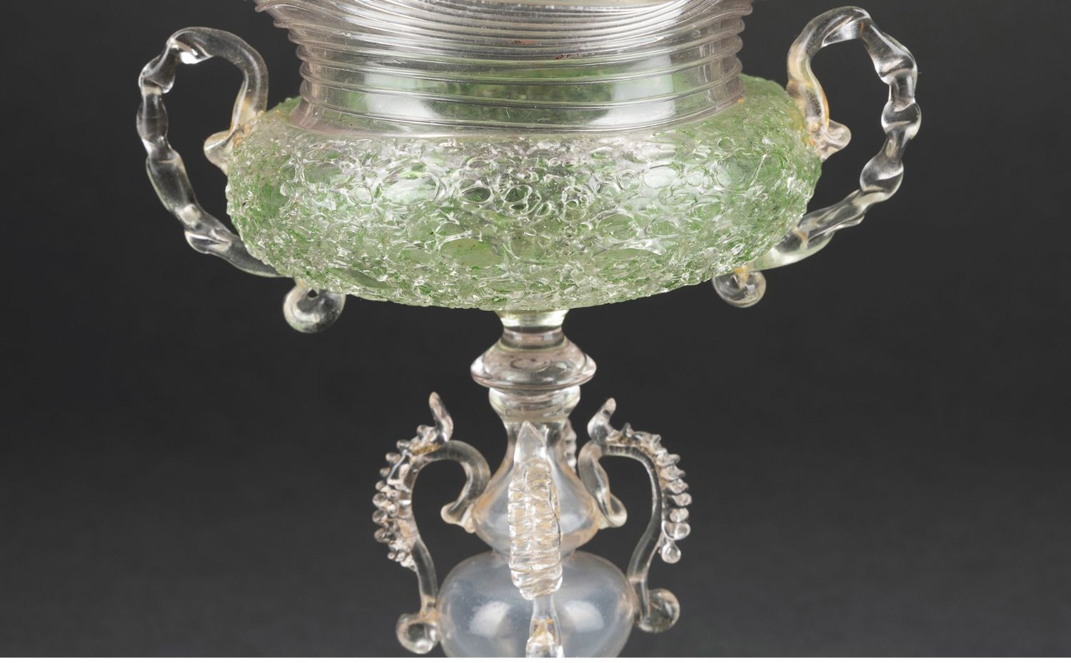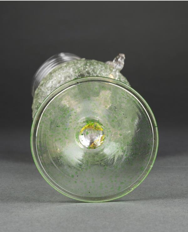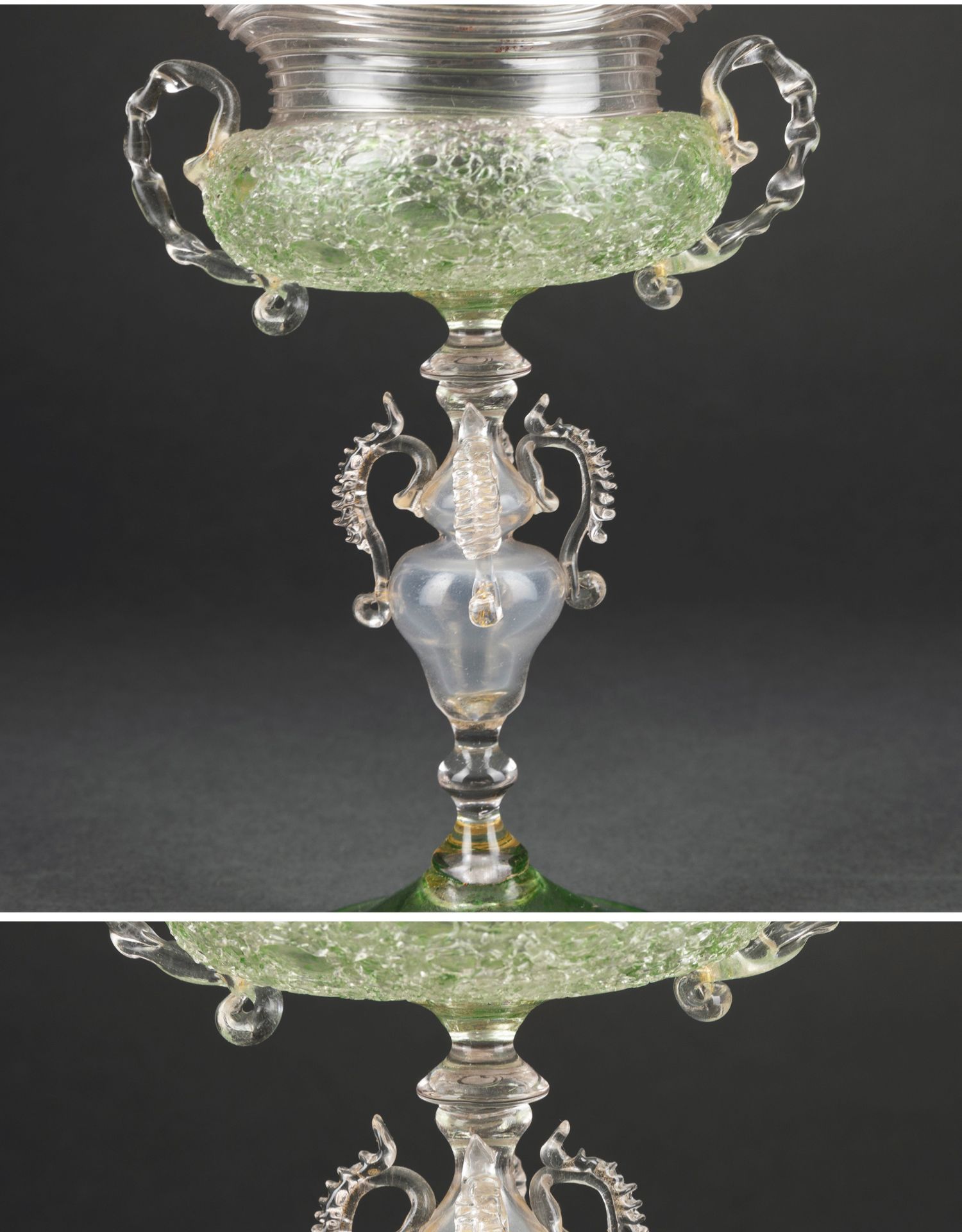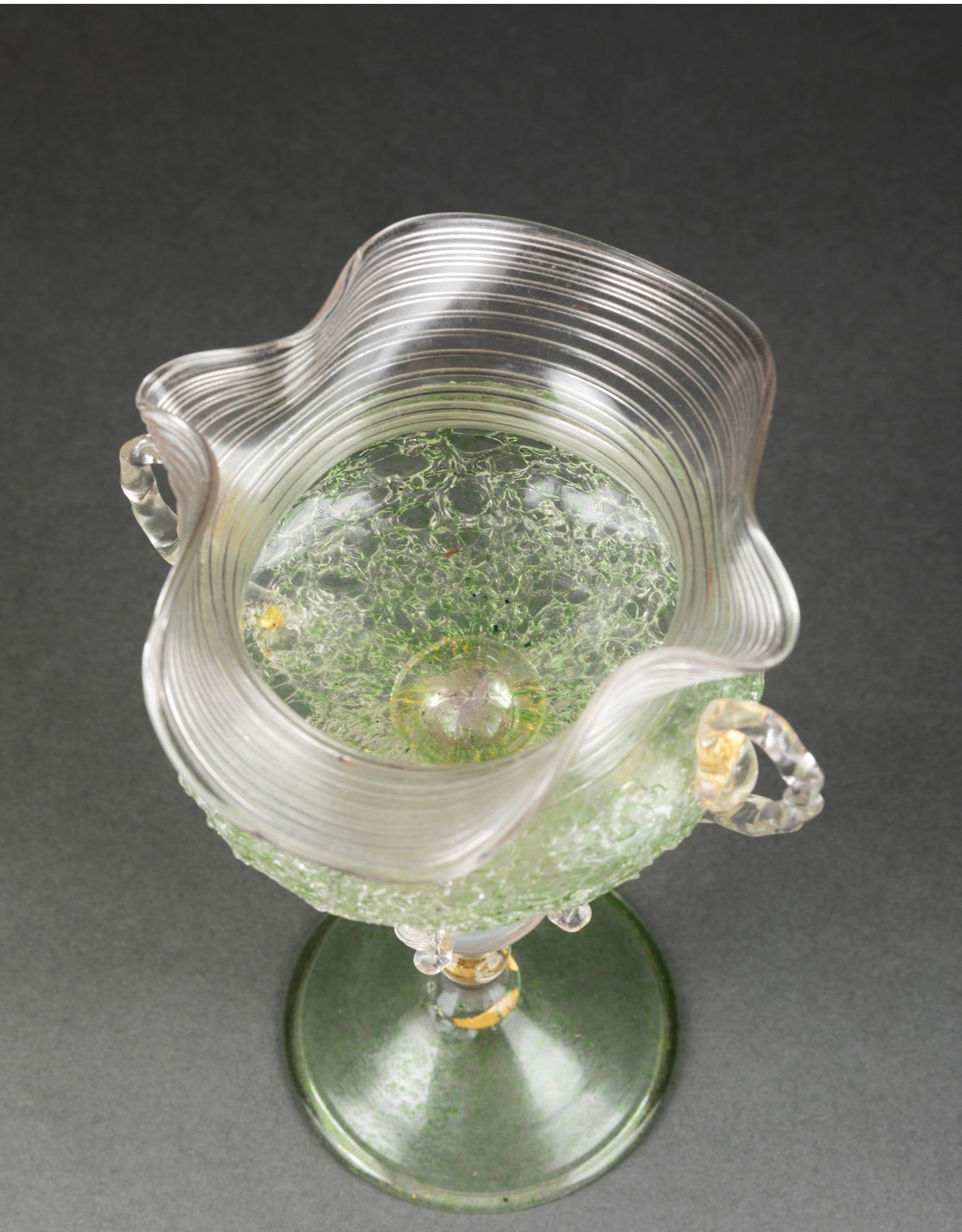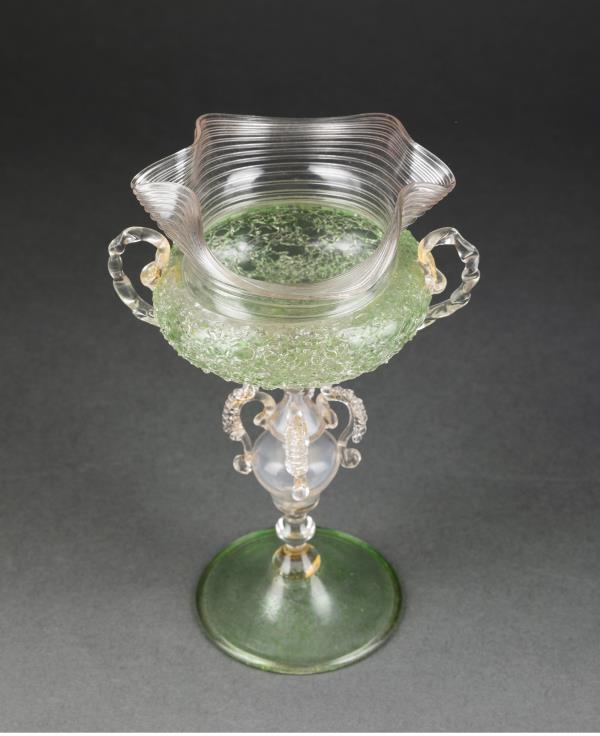 独角鹿西洋古董意大利出品威尼斯Murano玻璃绿色双耳高脚杯